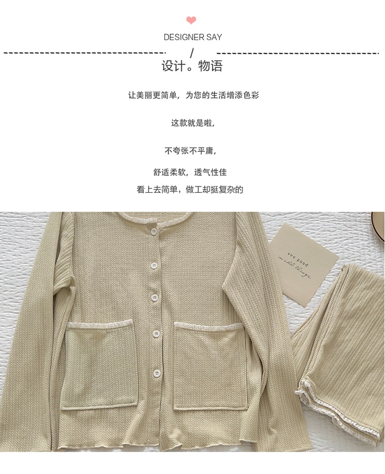 Isn 스타일 잠옷 여자의 봄과 가을 긴 소매 얇은 면 2023 새로운 사이버 연예인 달콤한 가디건 가정복 투피스 세트