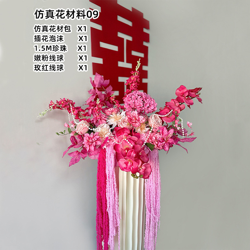 웨딩 룸 장식품 시뮬레이션 꽃 결혼식 빨간 집 거실 장식 꽃 결혼식 배열 웨딩 꽃꽂이 포옹 양동이스토어 가기
