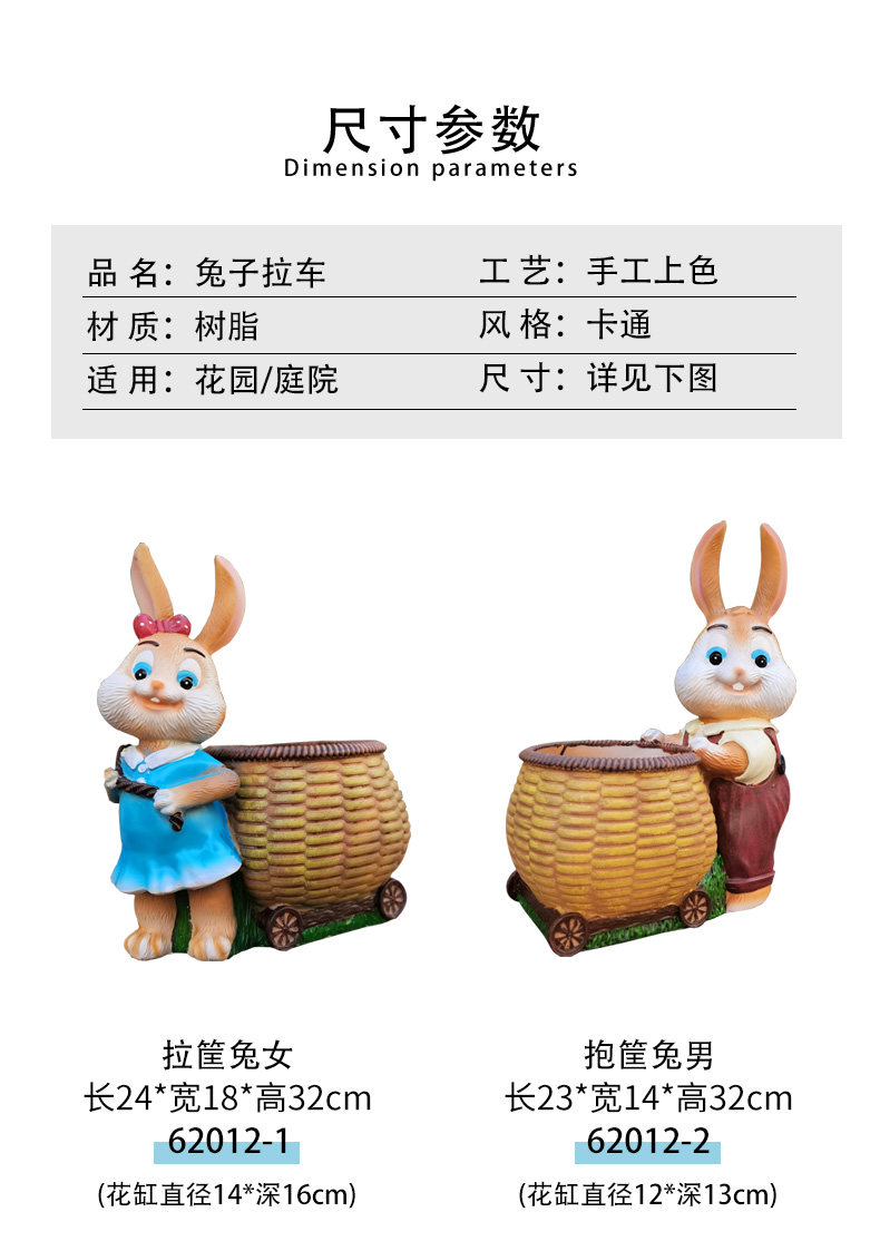 1PKN 도매 야외 정원 장식 장식품 바닥 귀여운 토끼 화분 대형 다육 안뜰 유치원스토어 가기