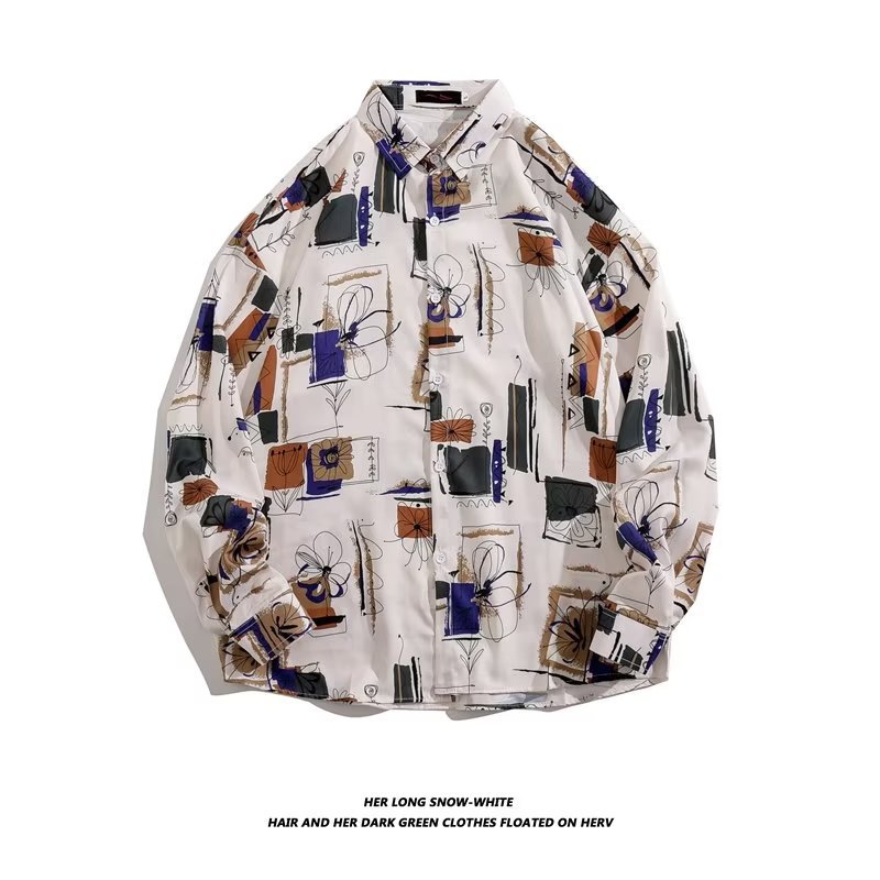 빈티지 홍콩 스타일 긴 소매 꽃 셔츠 남자의 2024 봄과 가을 새로운 느슨한 겉옷 디자인 틈새 인쇄 셔츠스토어 가기