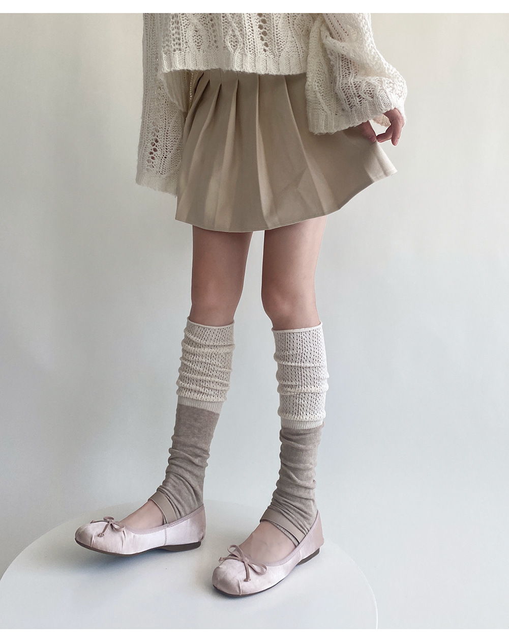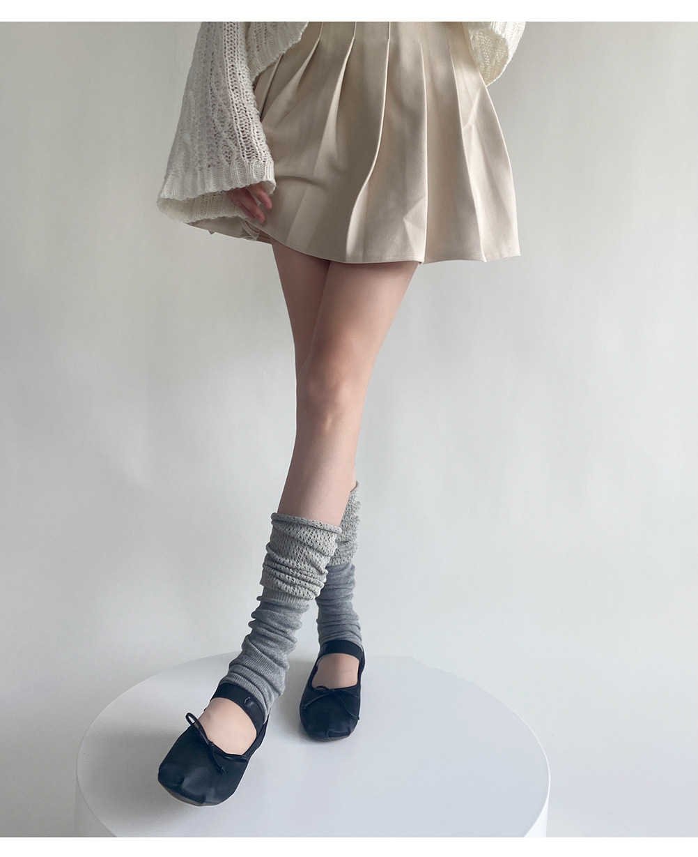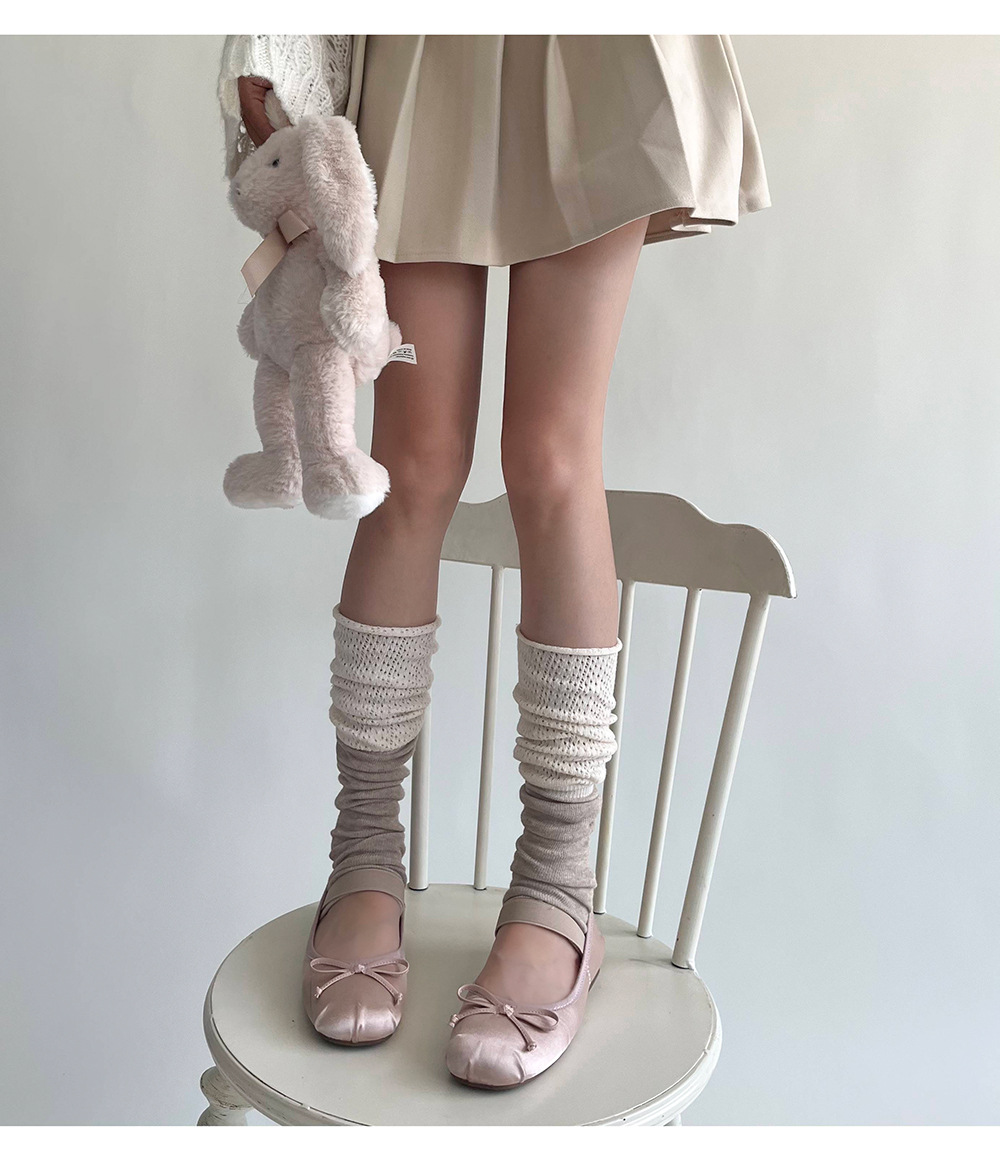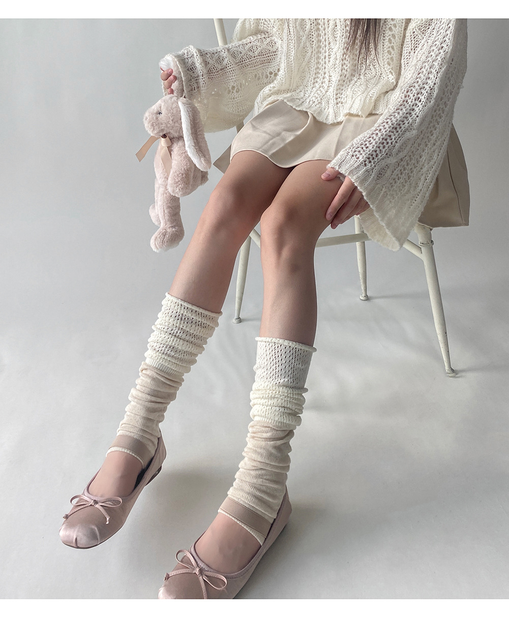 한국 스타일 면 니트 다리 소매 긴 양말 바느질 더미 양말 따뜻한 색상 부드러운 스타일 여성용 모든 일치 얕은 양말