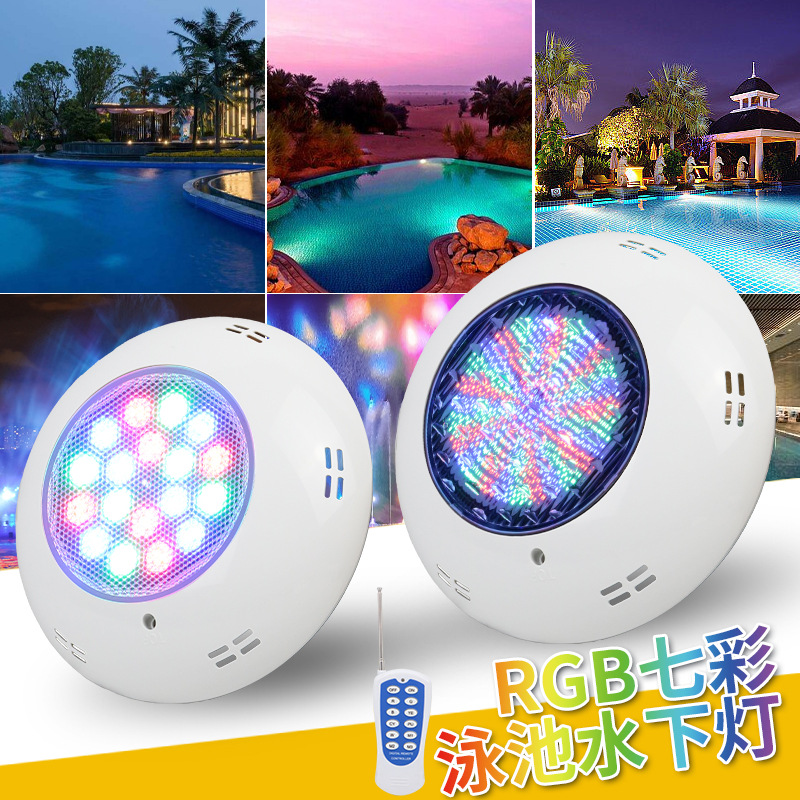 국경을 넘는 LED 수영장 벽걸이 조명 12v24v 다채로운 수영장 물고기 연못 수경 분수 원격 제어 야외 방수 벽 조명