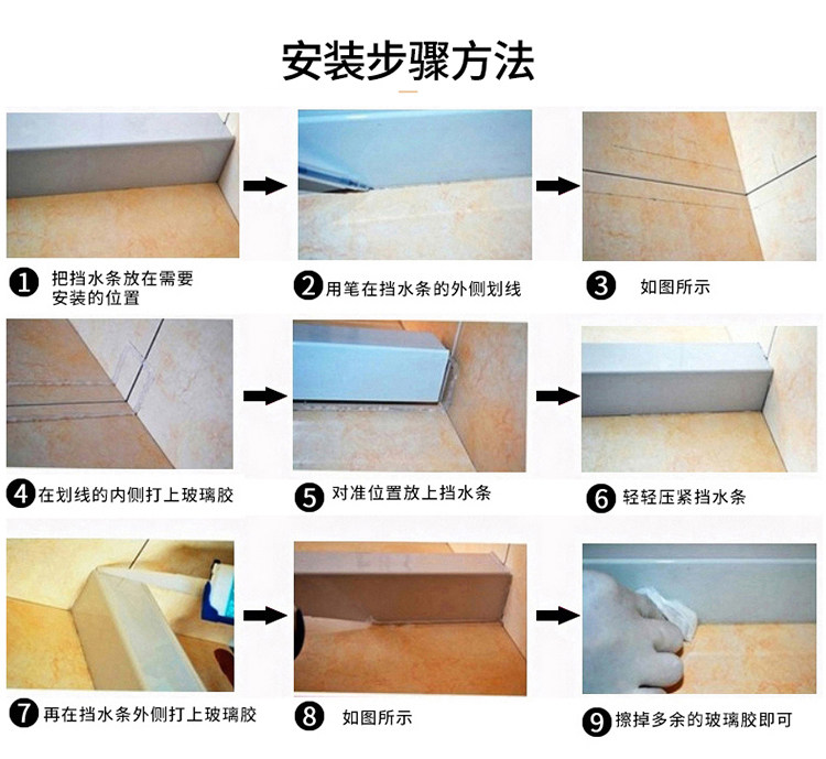 1PKN 도매 물막이 샤워실 스톤 베이스 블랙 앤 화이트 골드 샌드 PVC 소재 문턱 욕실 드라이 및 습식스토어 가기