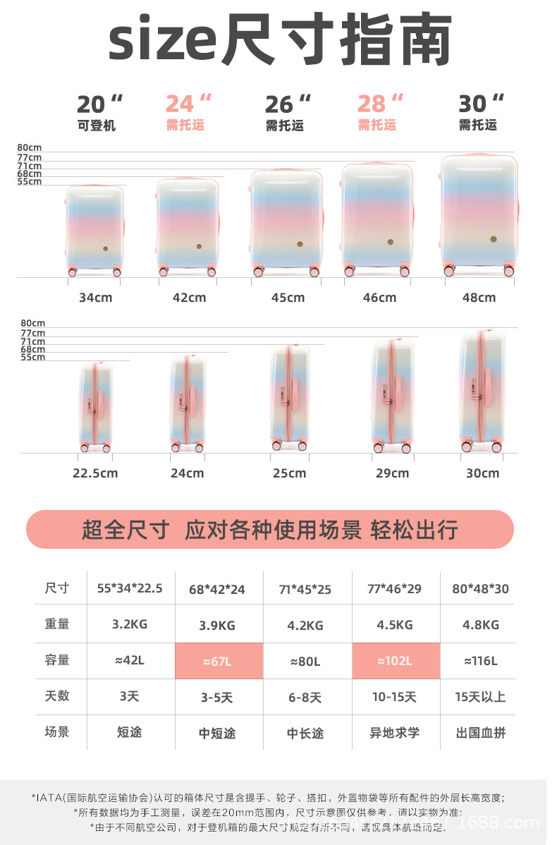PC 라이트 럭셔리 러기지 케이스 24 인치 트롤리 케이스 여성 학생 다기능 탑승 케이스 20 인치 가볍고 튼튼한 여행 케이스스토어 가기