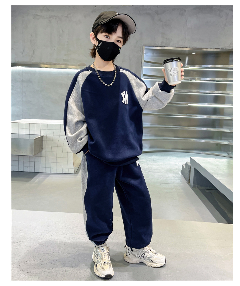 소년 가을과 겨울 세트 2023 new CUHK 아동 캐주얼 스웨터 기모 투피스 스포츠 아동복 도매스토어 가기