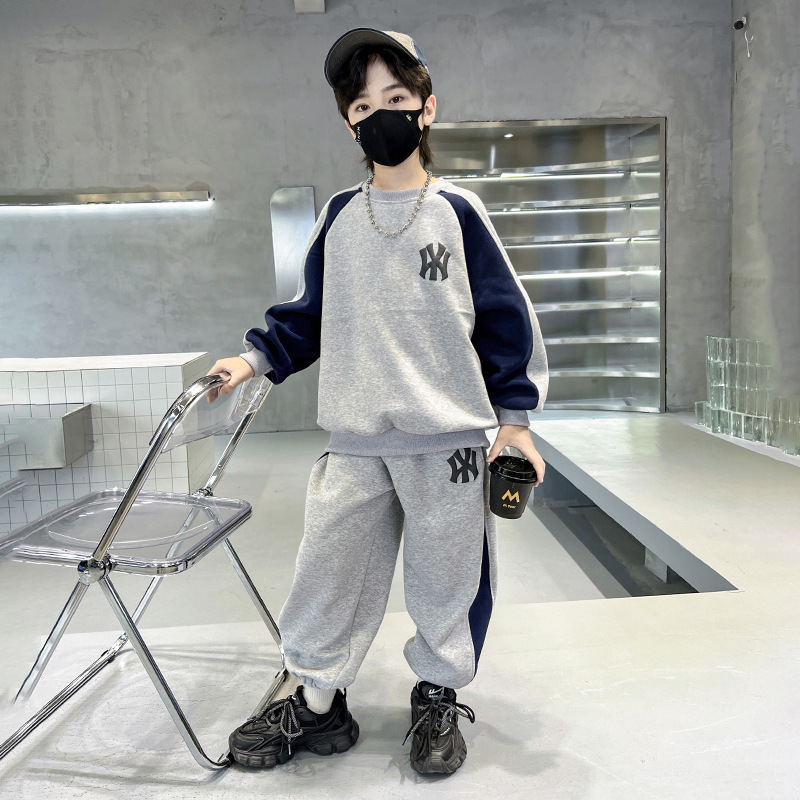 소년 가을과 겨울 세트 2023 new CUHK 아동 캐주얼 스웨터 기모 투피스 스포츠 아동복 도매