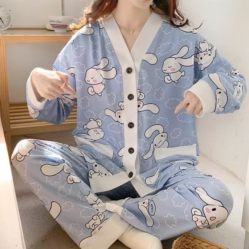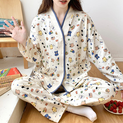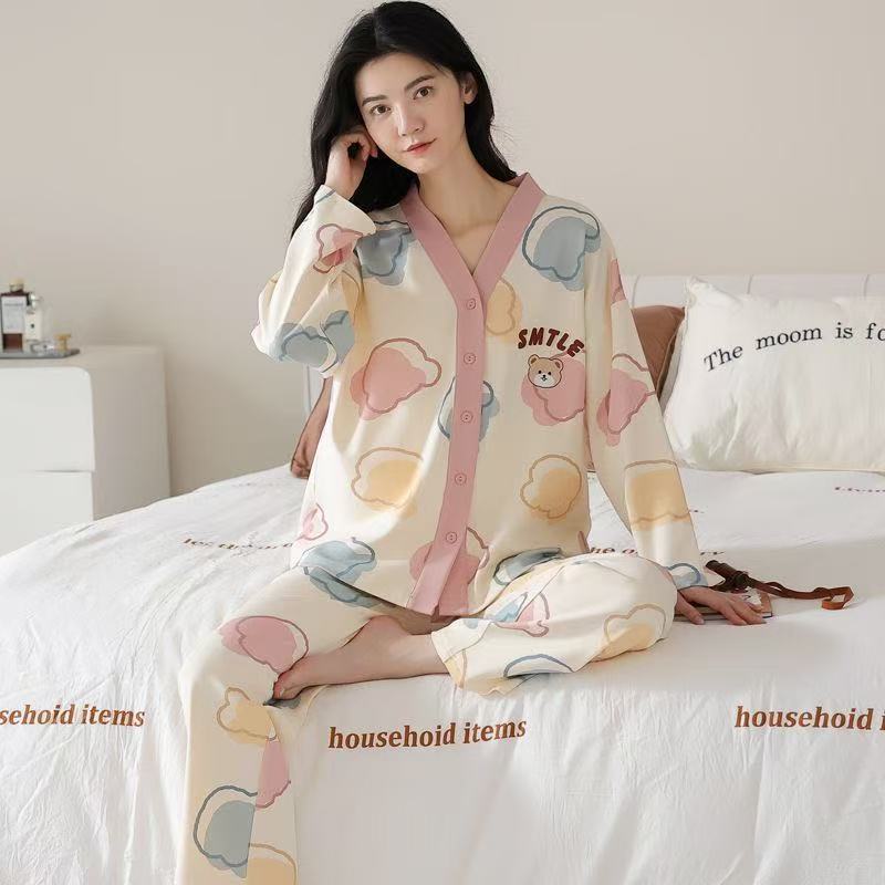 잠옷 여성의 봄과 가을 2025 새로운 긴 소매 하이 엔드 센스 귀여운 얇은 외부 착용 홈 의류 플러스 사이즈 세트스토어 가기