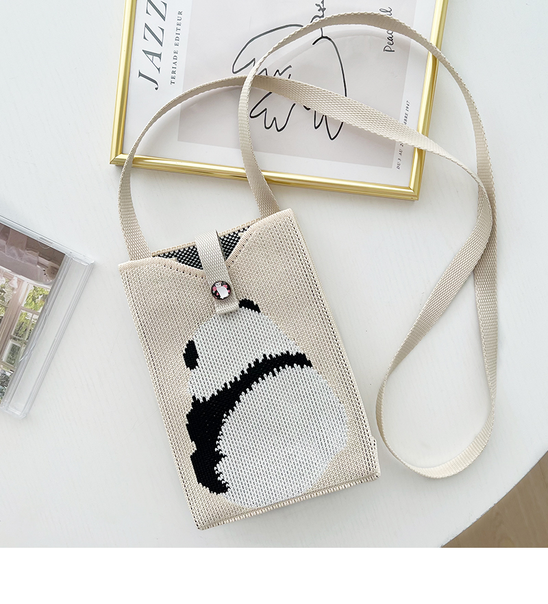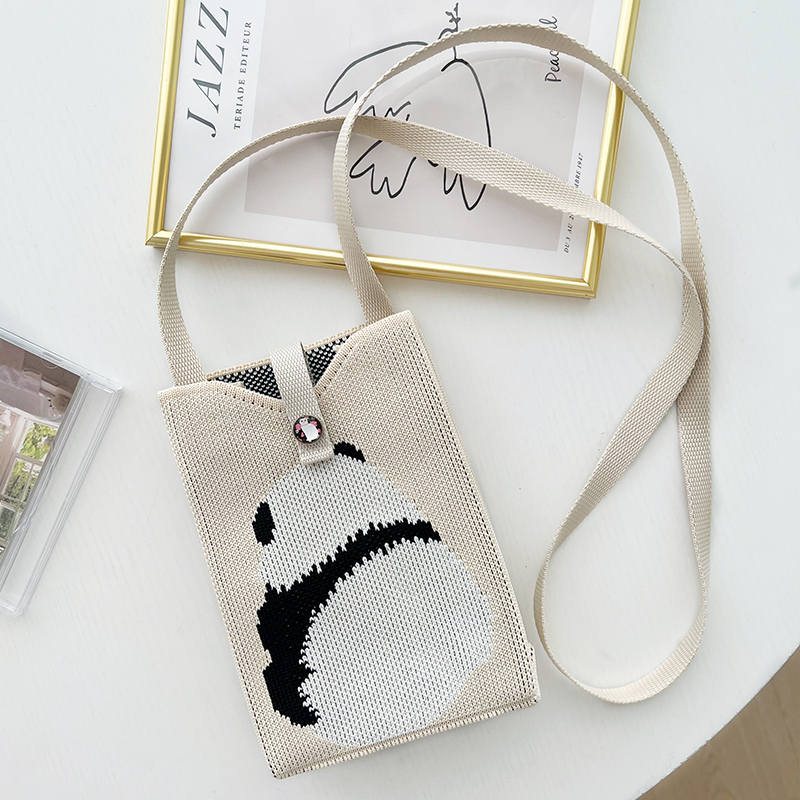 귀여운 만화 전화 가방 여성의 자카드 변경 립스틱 보관 가방 수직 크로스 바디 니트 작은 사각형 가방