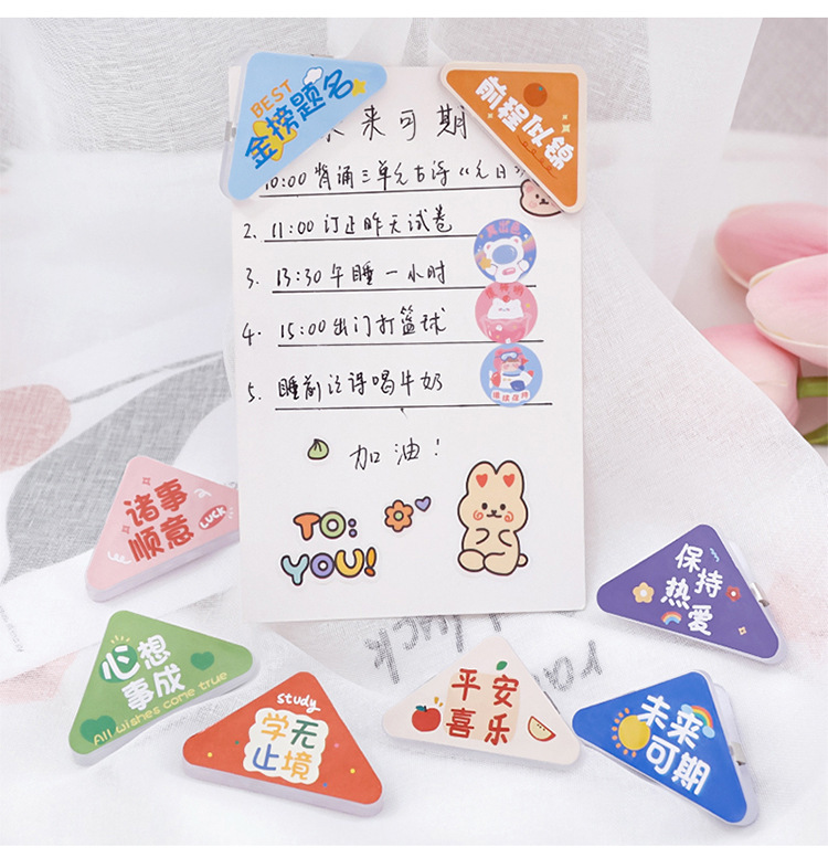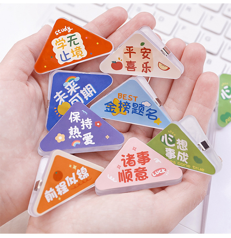 영감 텍스트 삼각형 클립 학생 보관 마무리 데이터 클립 책 클립 문구 시험 종이 클립 만화 가장자리 클립스토어 가기