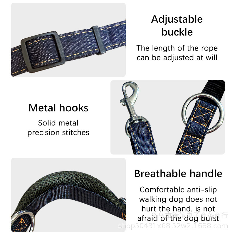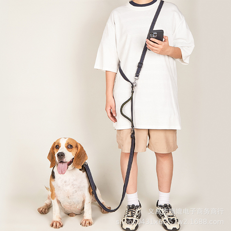 데님 1-2 다기능 크로스 오버 타이 허리 실행 무료 손 소형 및 중형 개 외출 견인 로프스토어 가기