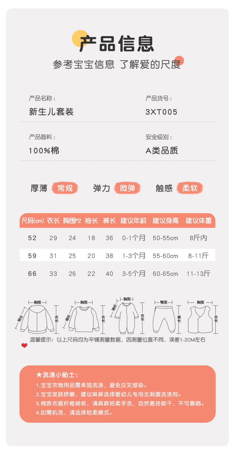신생아 옷 봄, 가을, 겨울용 순면 슬림핏 분리형 아기 속옷 세트