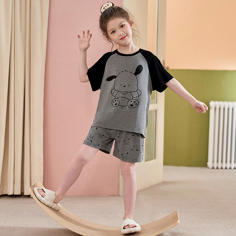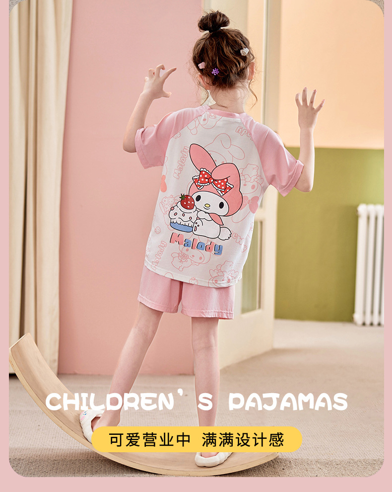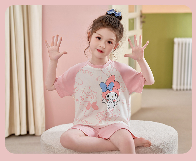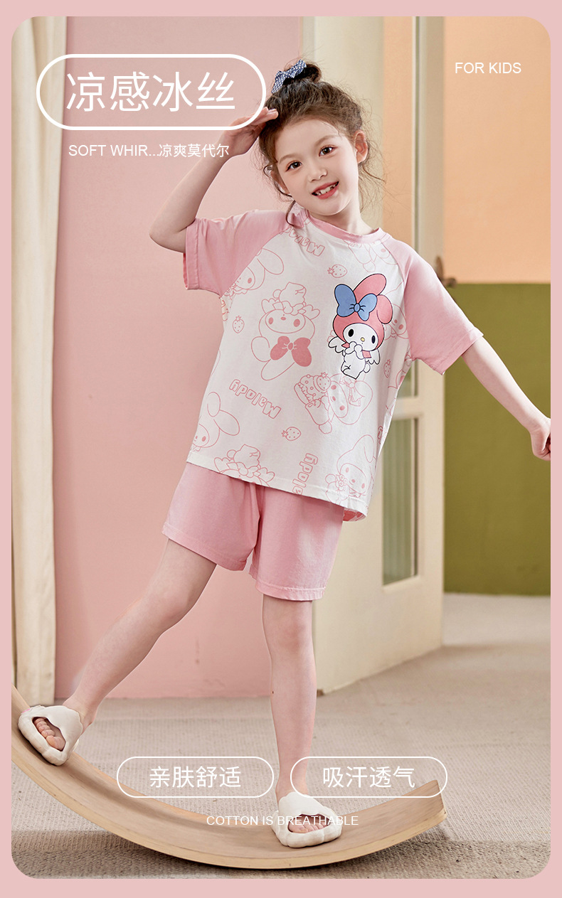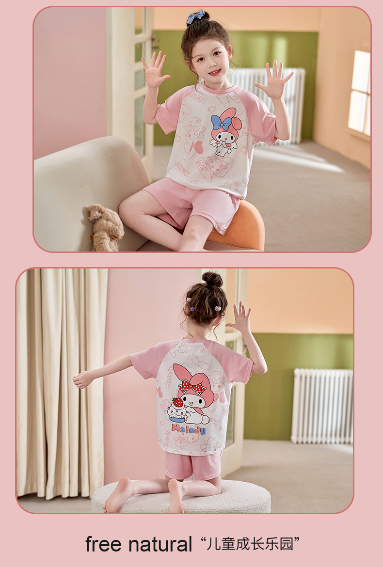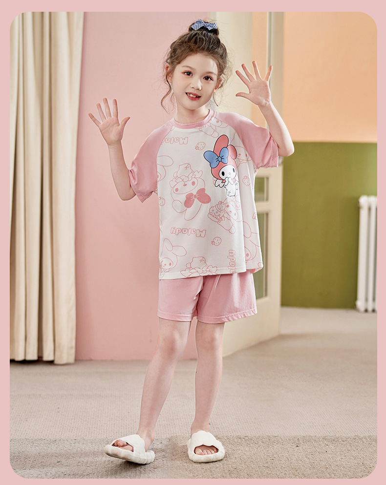 2024 여름 새로운 모달 어린이 잠옷 소녀 반팔 반바지 세트 어린이 잠옷 만화 홈 옷스토어 가기
