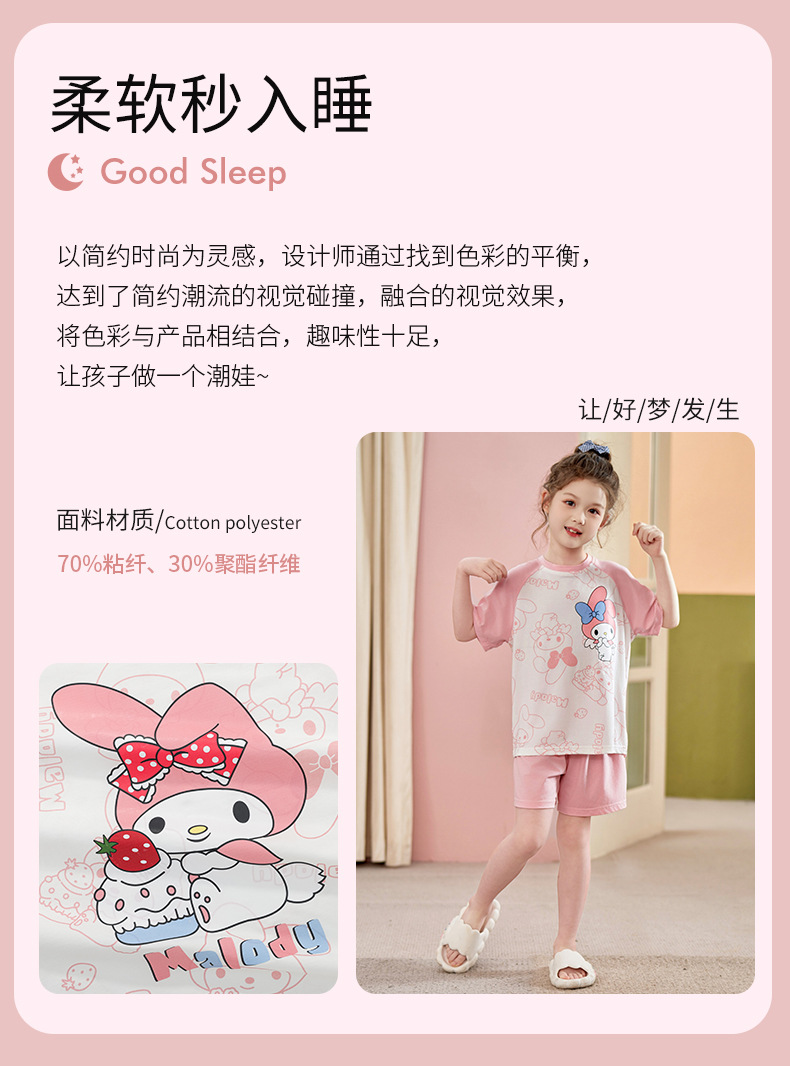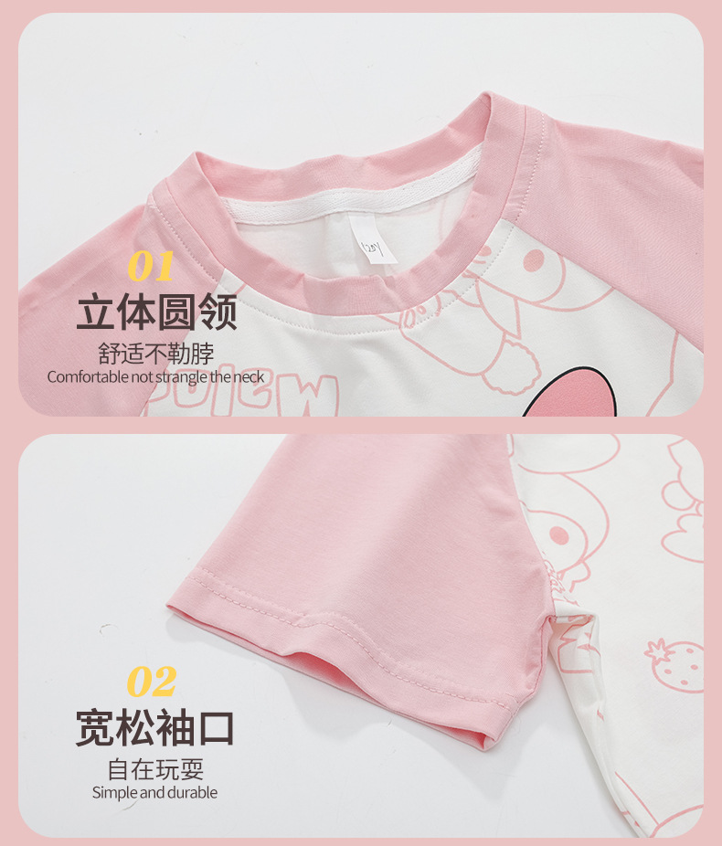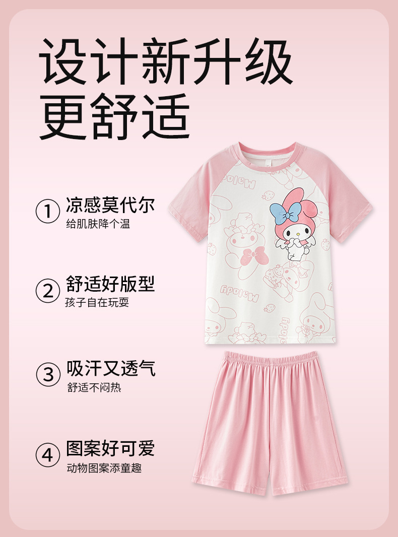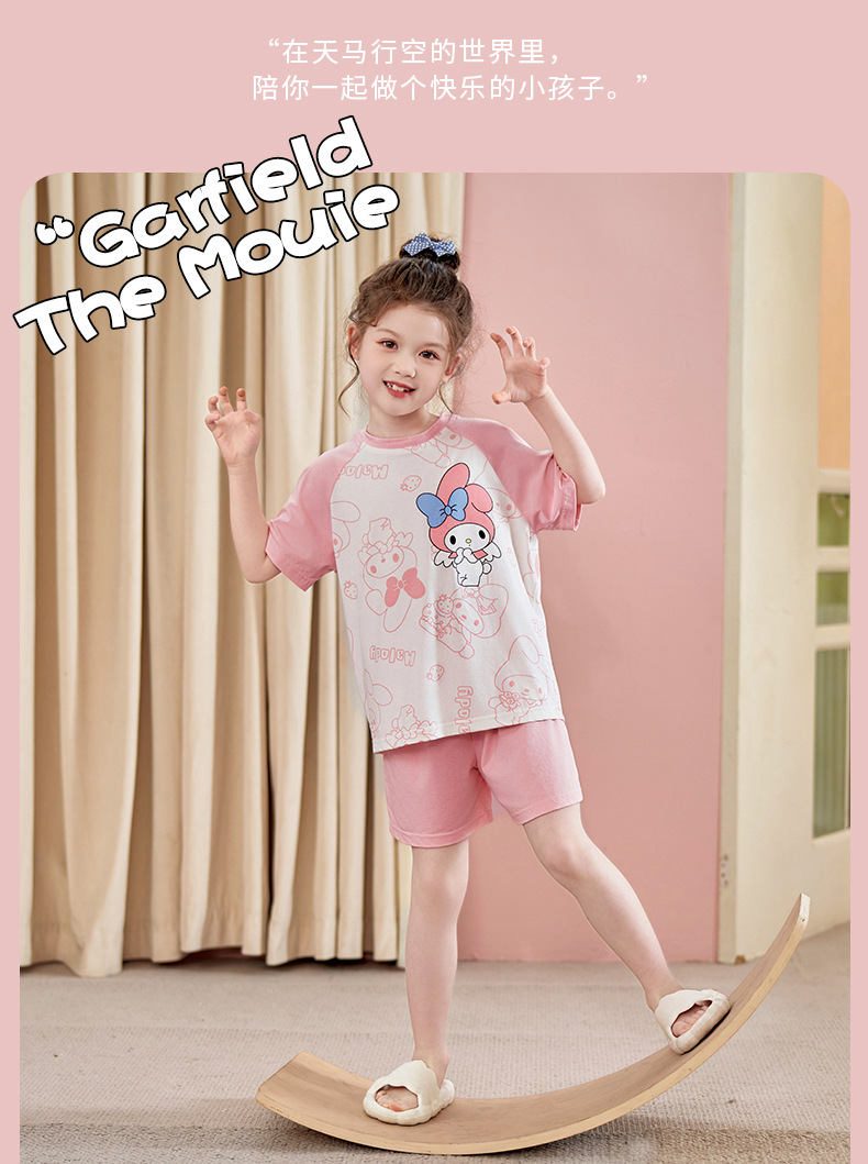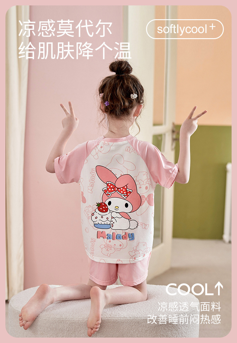 2024 여름 새로운 모달 어린이 잠옷 소녀 반팔 반바지 세트 어린이 잠옷 만화 홈 옷스토어 가기