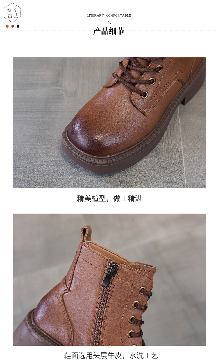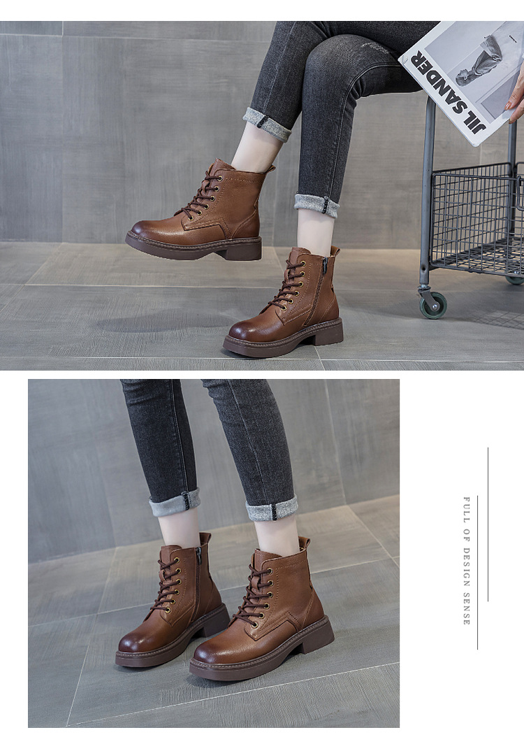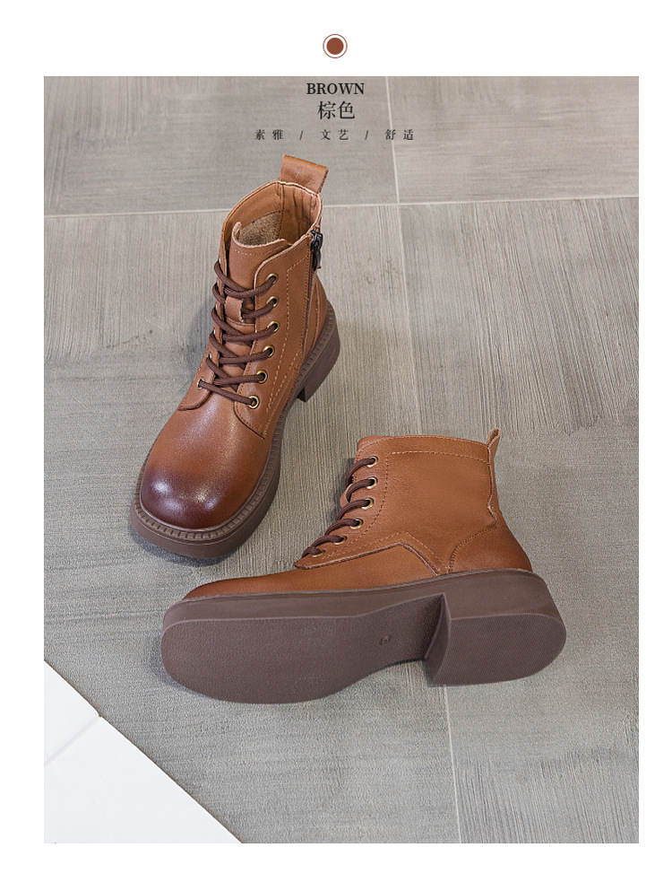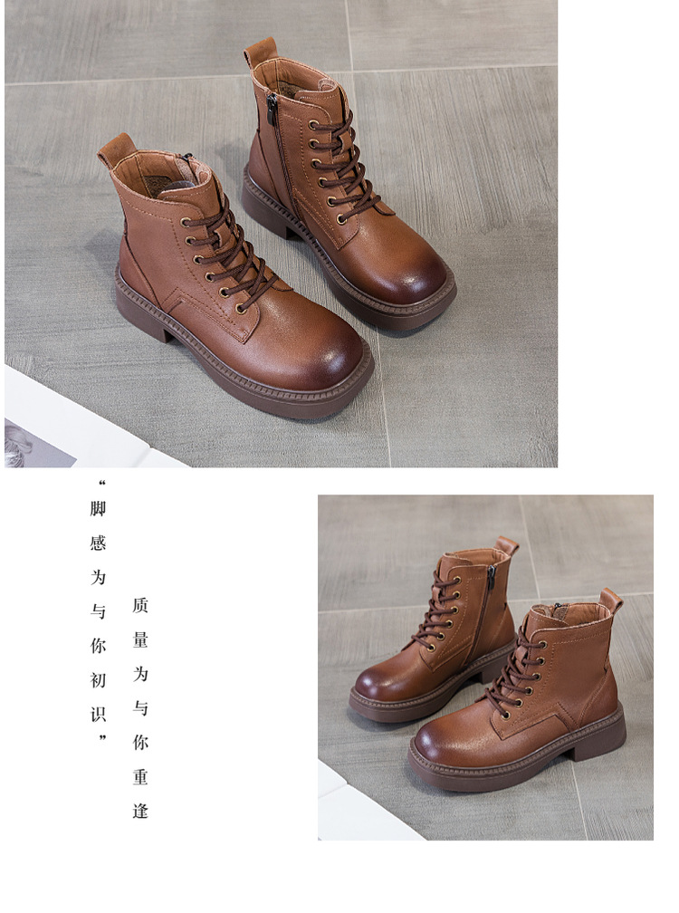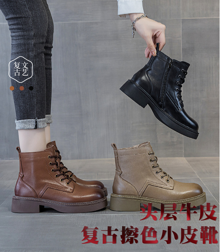 탑 레이어 소가죽 마틴 부츠 여성 가을과 겨울 2023 새로운 빈티지 정품 가죽 영국 스타일 두꺼운 단독 여성용 짧은 부츠스토어 가기