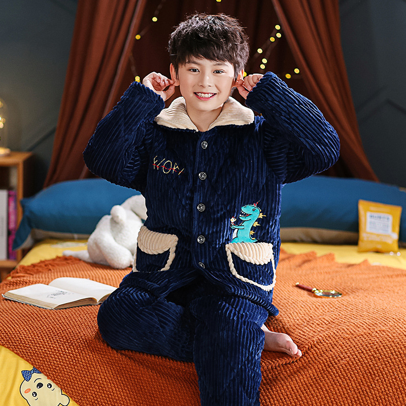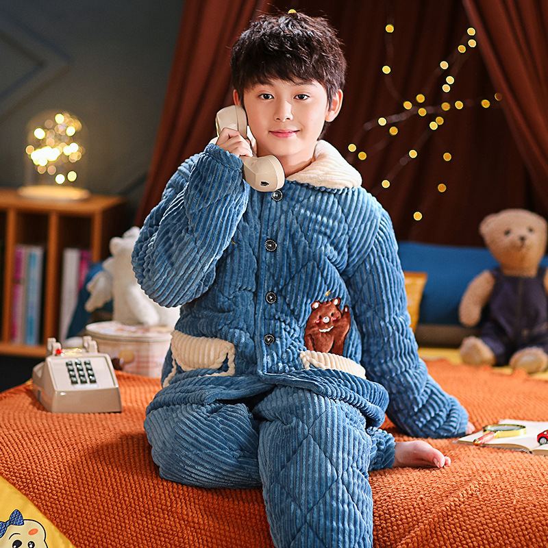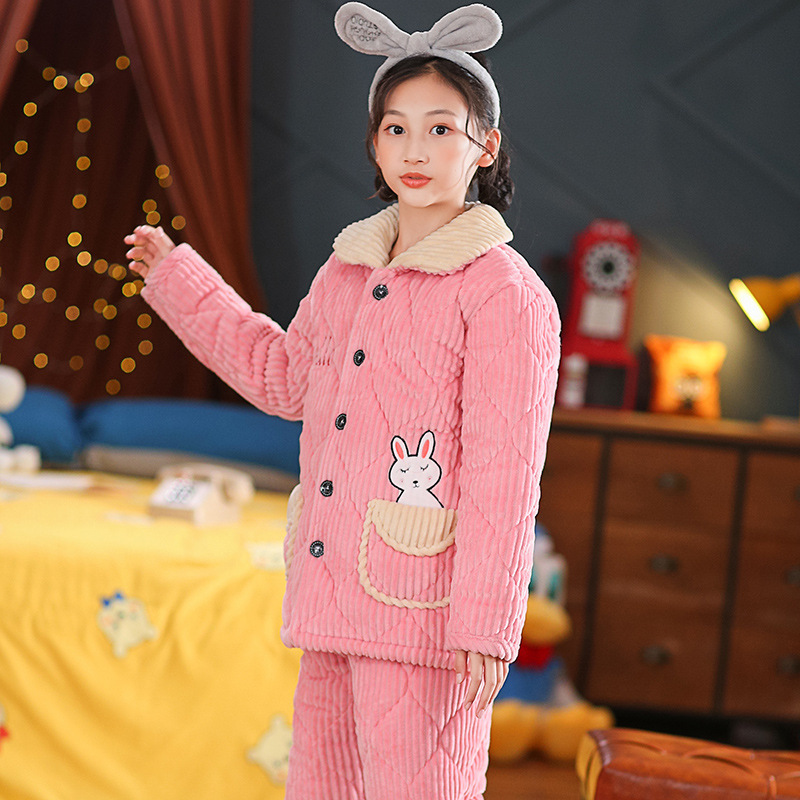 어린이 잠옷 가을과 겨울 소년과 소녀 플란넬 여성 3 층 코튼 패딩 기모 소녀 겨울 가정 옷 도매