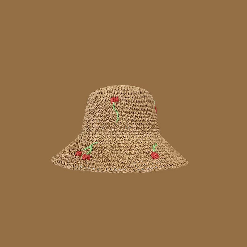 • 자수 밀짚모자-카키