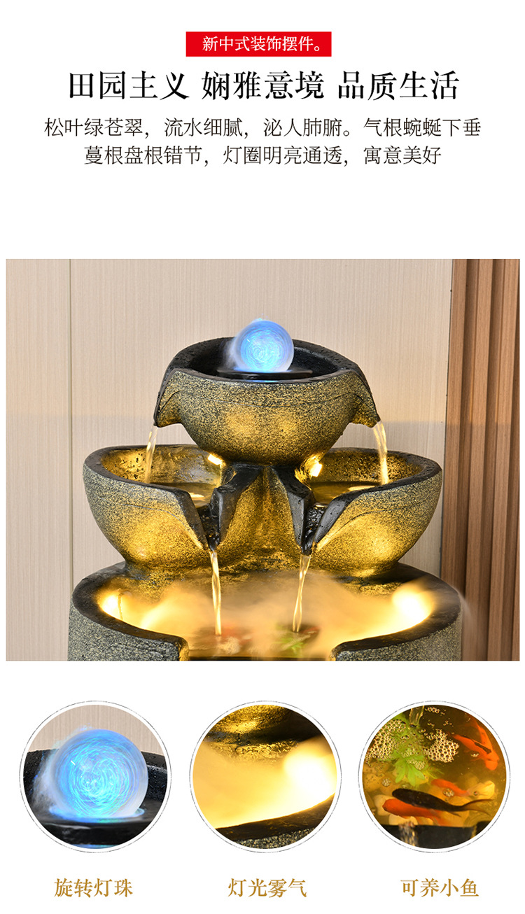 외국 무역용 흐르는 물 분수 순환수 행운을 불러오는 풍수구 데스크탑 장식품 정원 거실 가정용 장식품 가습기