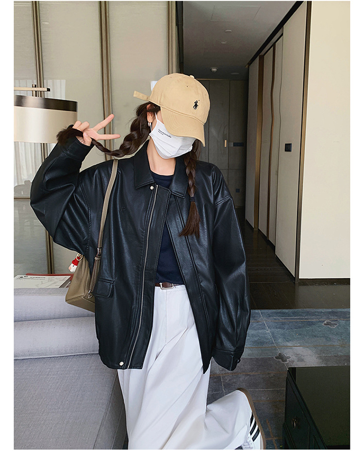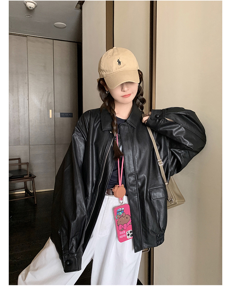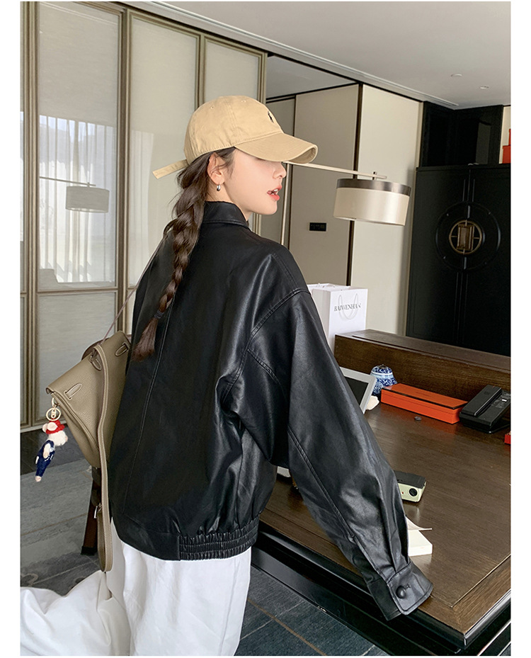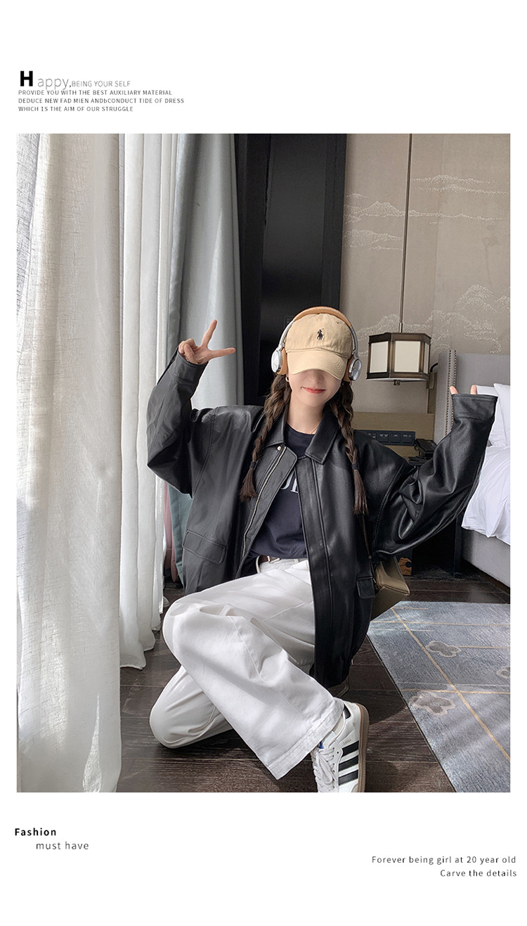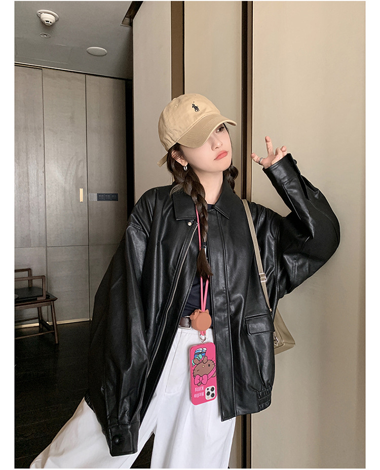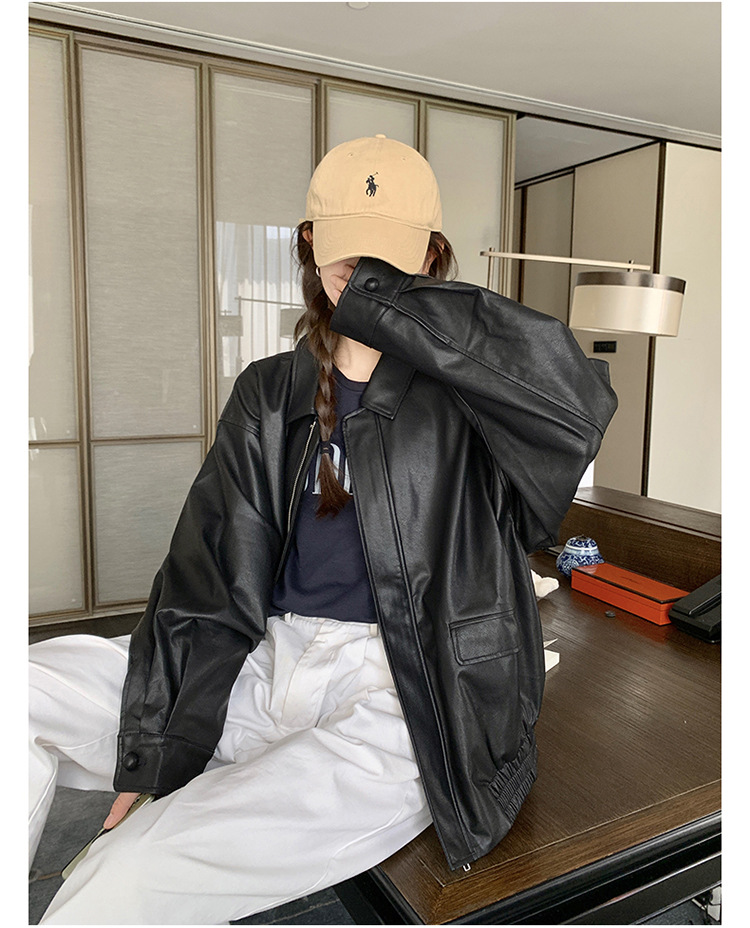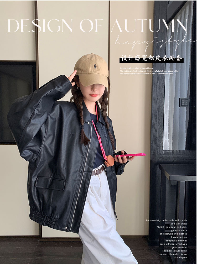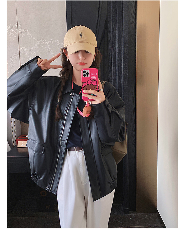 아메리칸 스타일 레트로 스위트 쿨 홍콩 스타일 느슨한 캐주얼 PU 가죽 오토바이 재킷 여성용 2023 봄과 가을 쁘띠 가죽 자켓스토어 가기