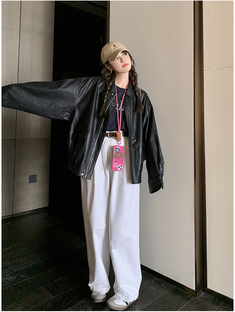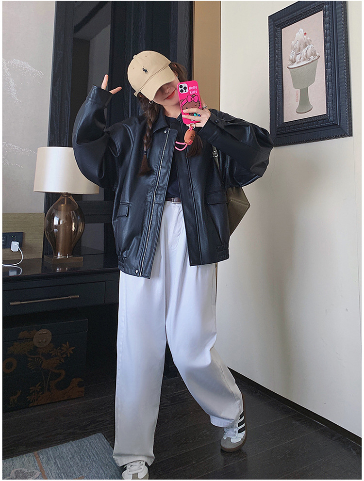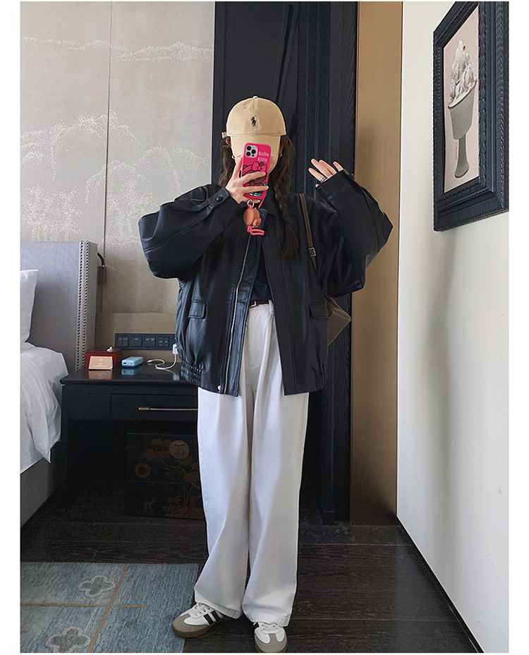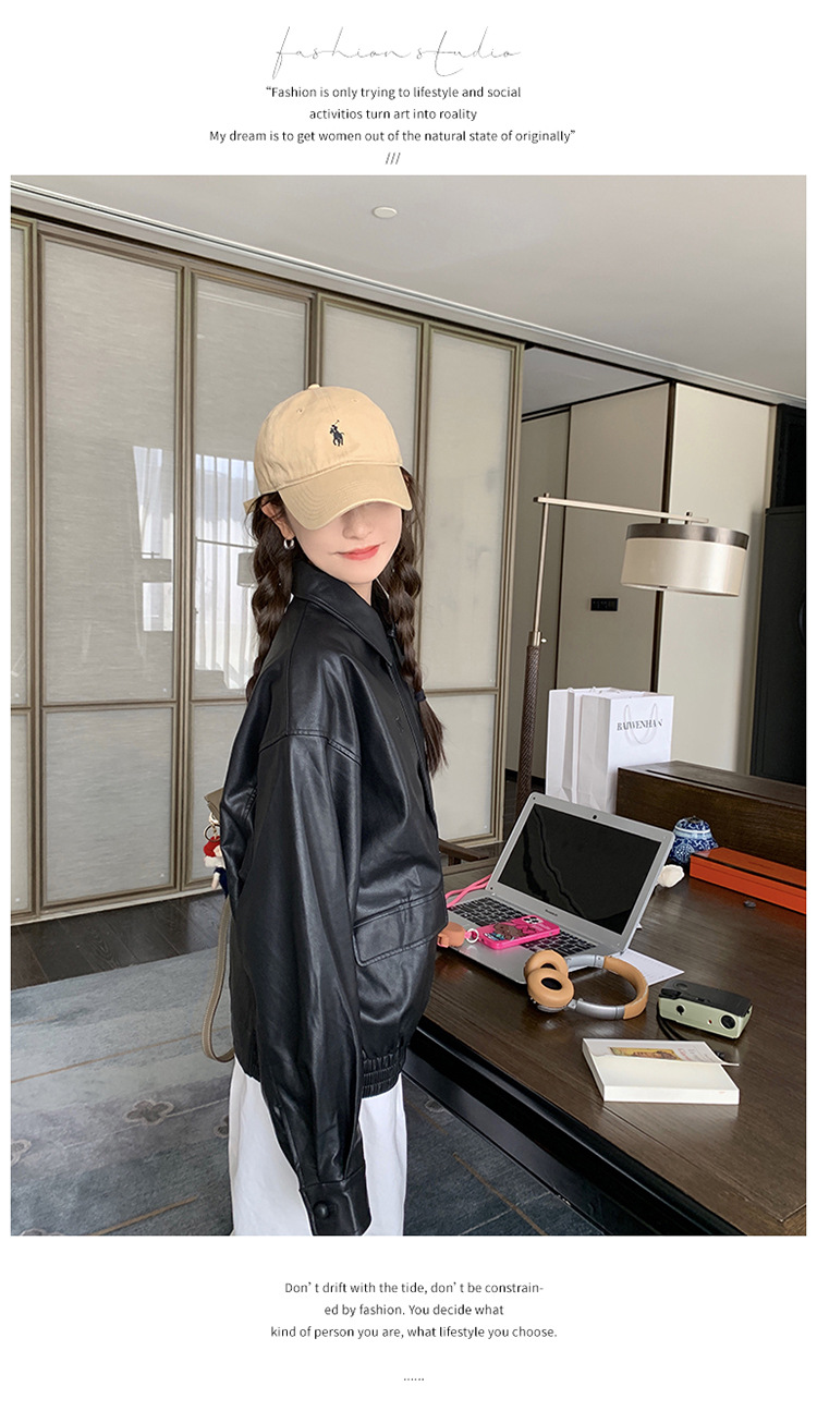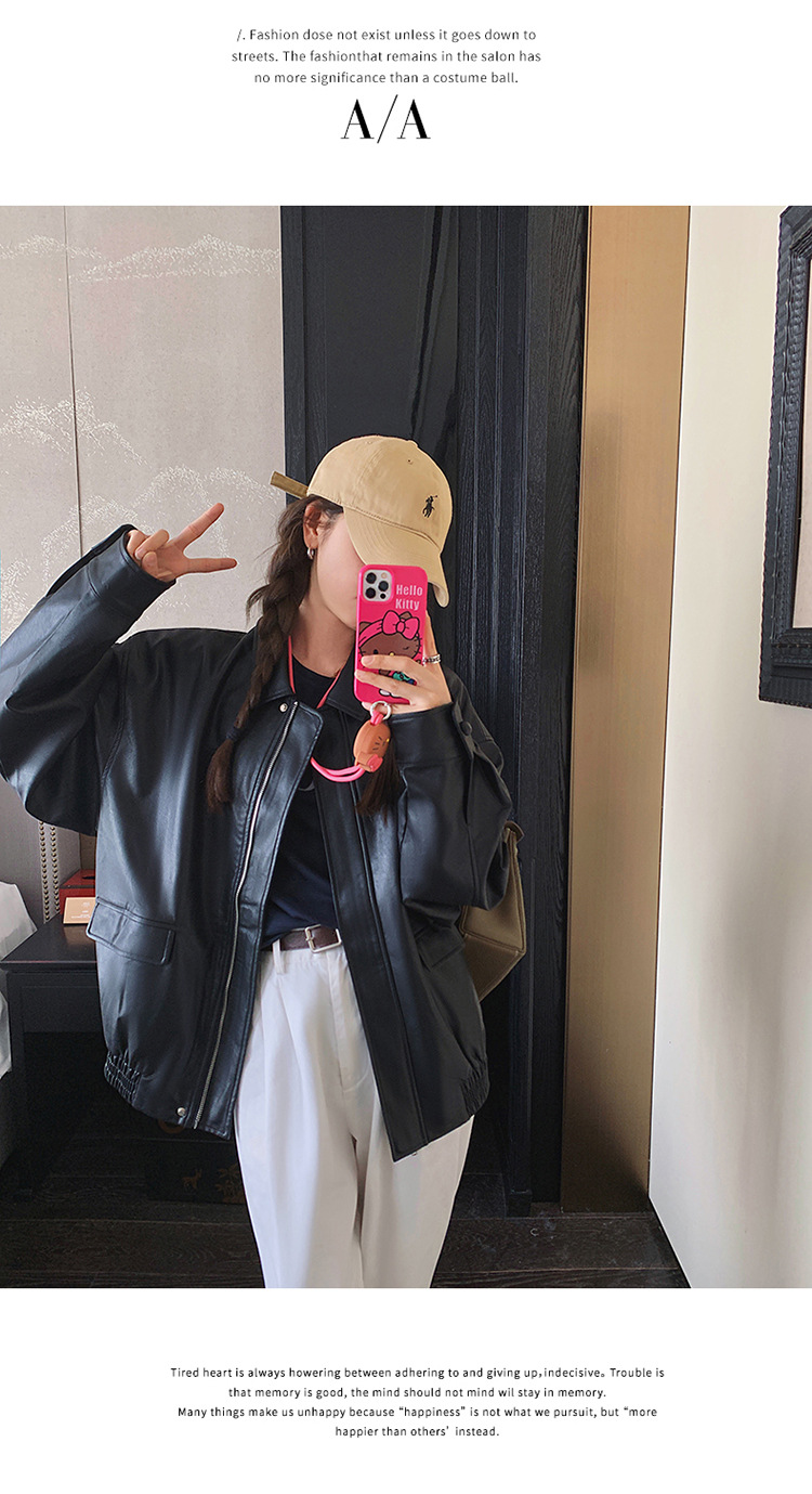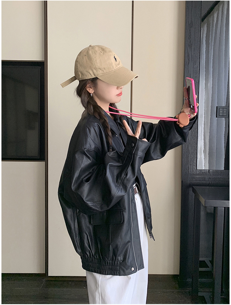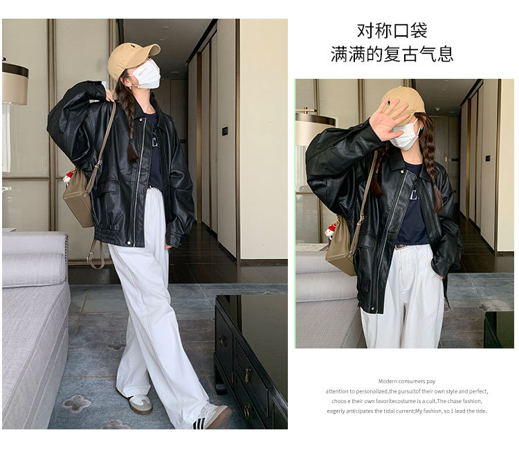 아메리칸 스타일 레트로 스위트 쿨 홍콩 스타일 느슨한 캐주얼 PU 가죽 오토바이 재킷 여성용 2023 봄과 가을 쁘띠 가죽 자켓스토어 가기