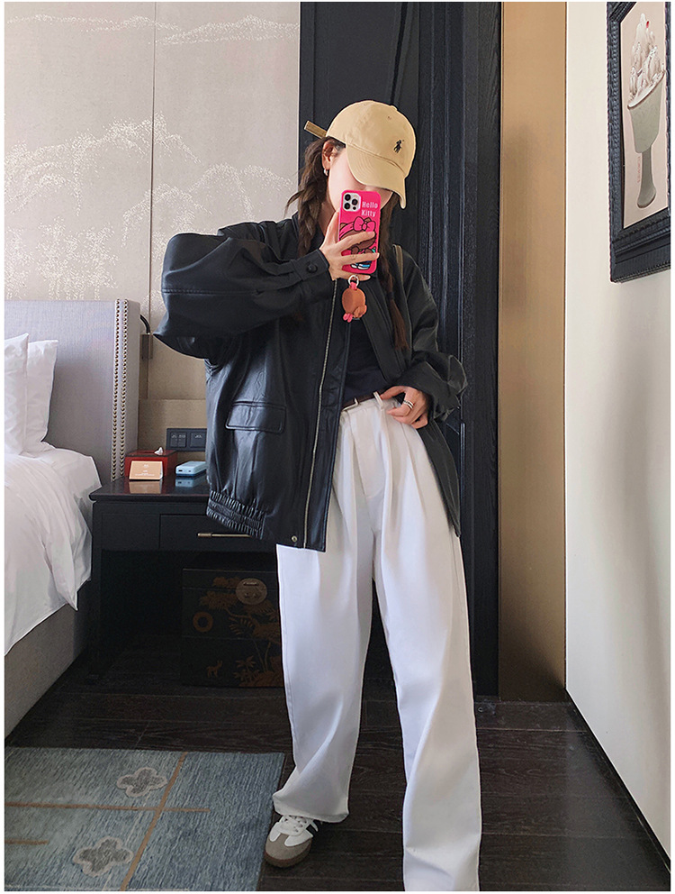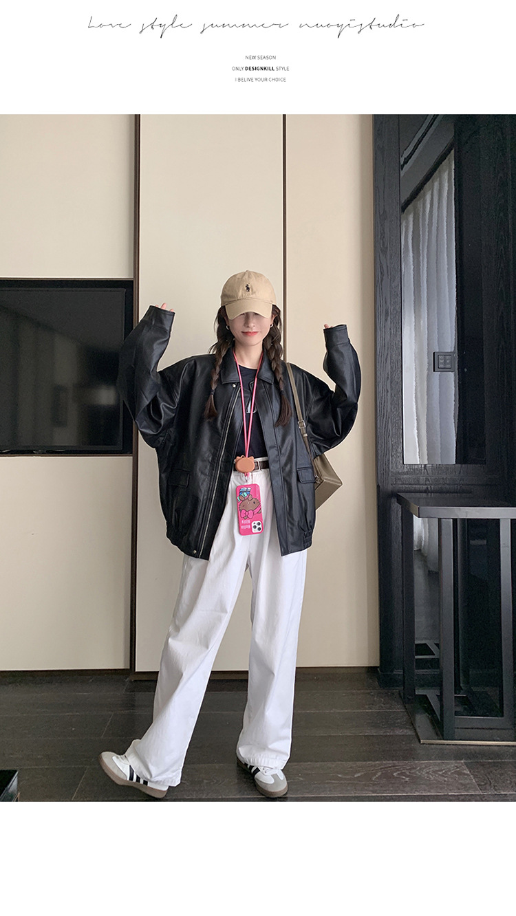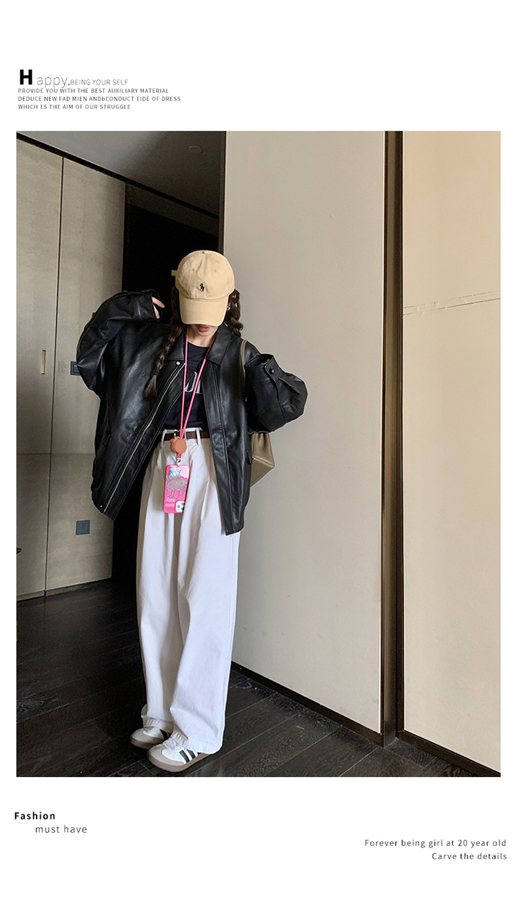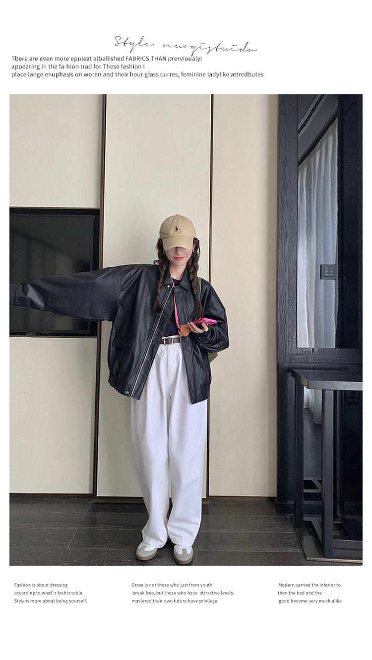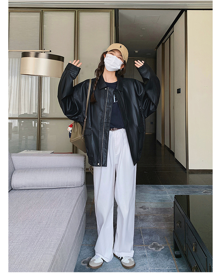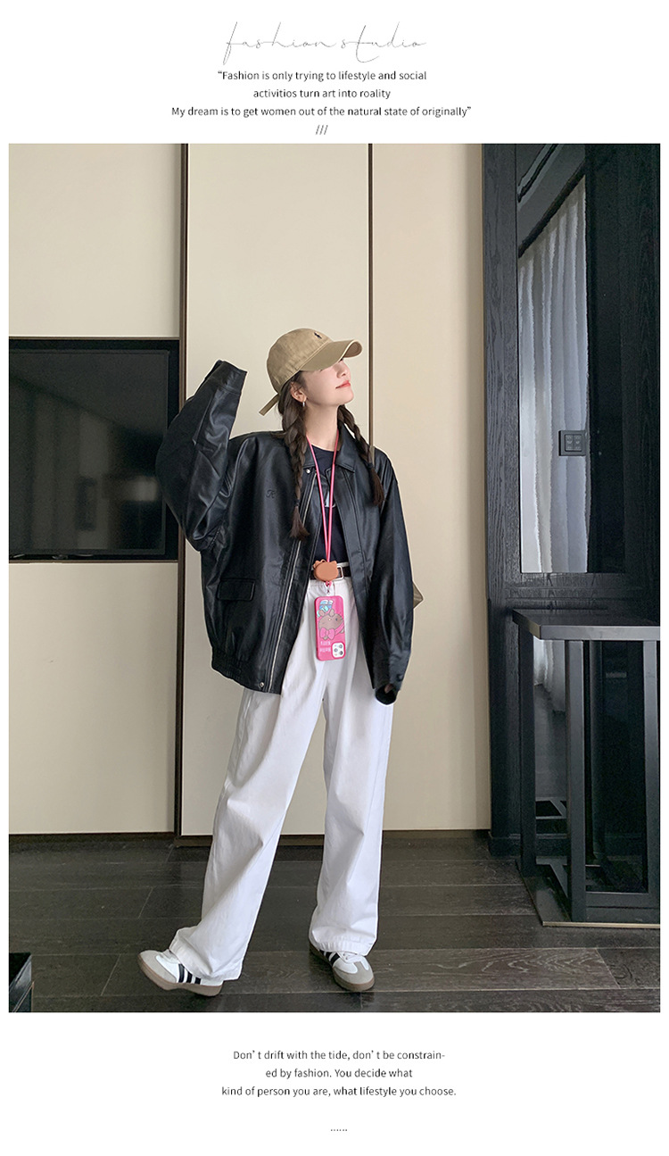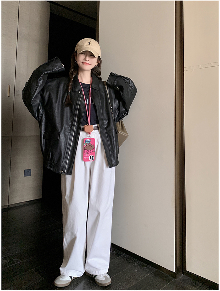 아메리칸 스타일 레트로 스위트 쿨 홍콩 스타일 느슨한 캐주얼 PU 가죽 오토바이 재킷 여성용 2023 봄과 가을 쁘띠 가죽 자켓스토어 가기
