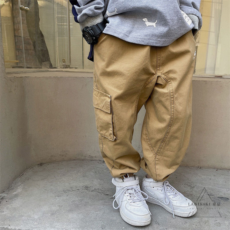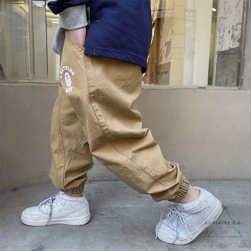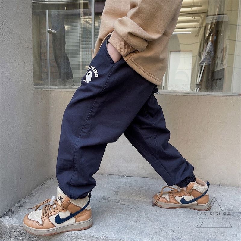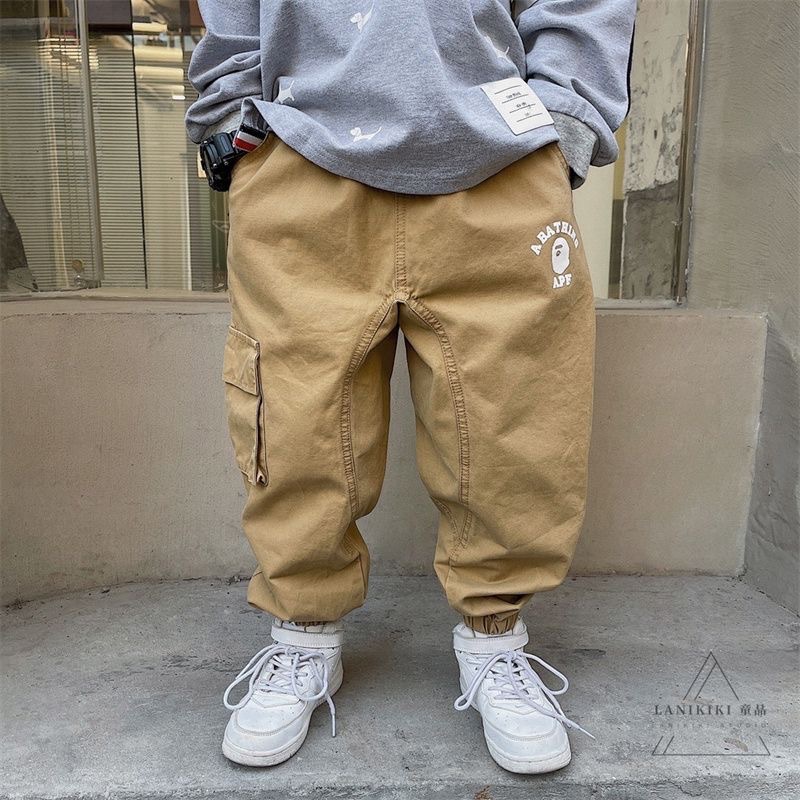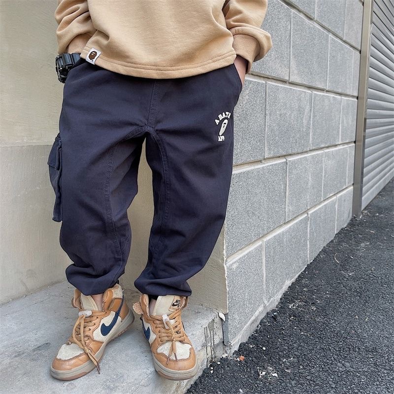 2025년 가을 트렌디한 일본 스타일 아동 캐주얼 원피스 바지, 남아용 단색 레터링 바지스토어 가기