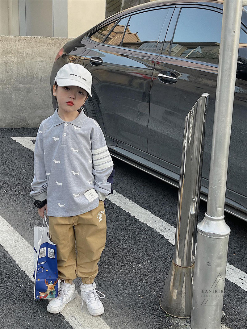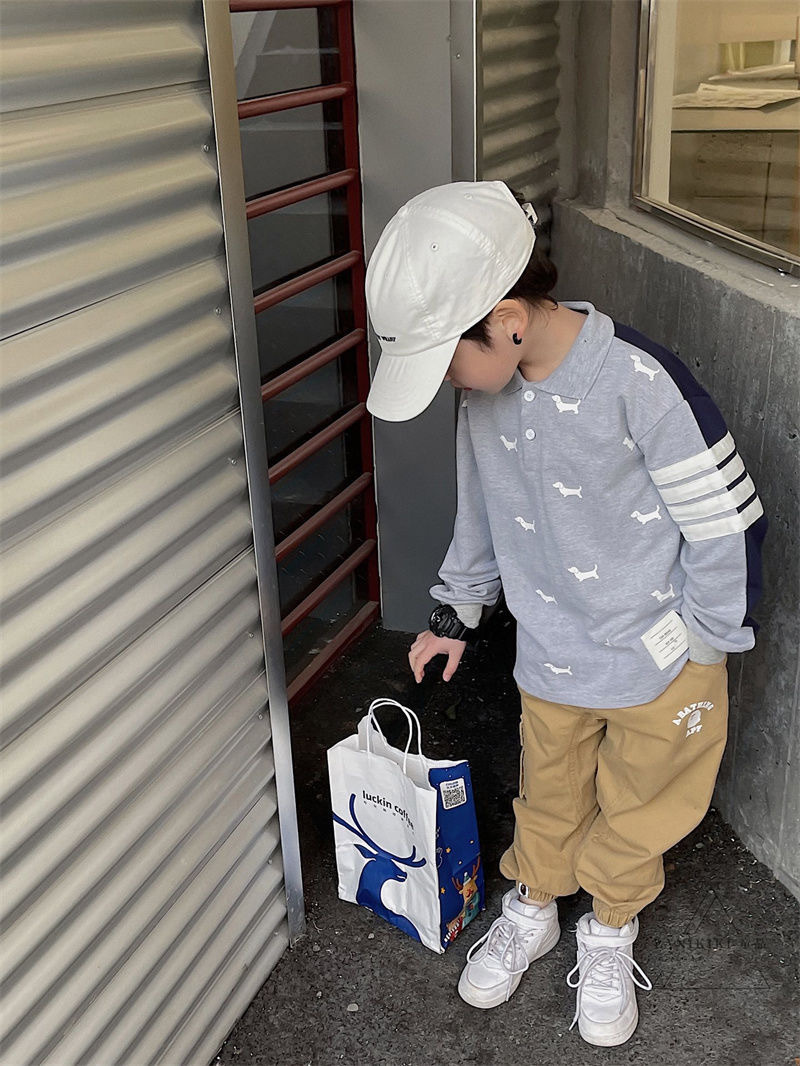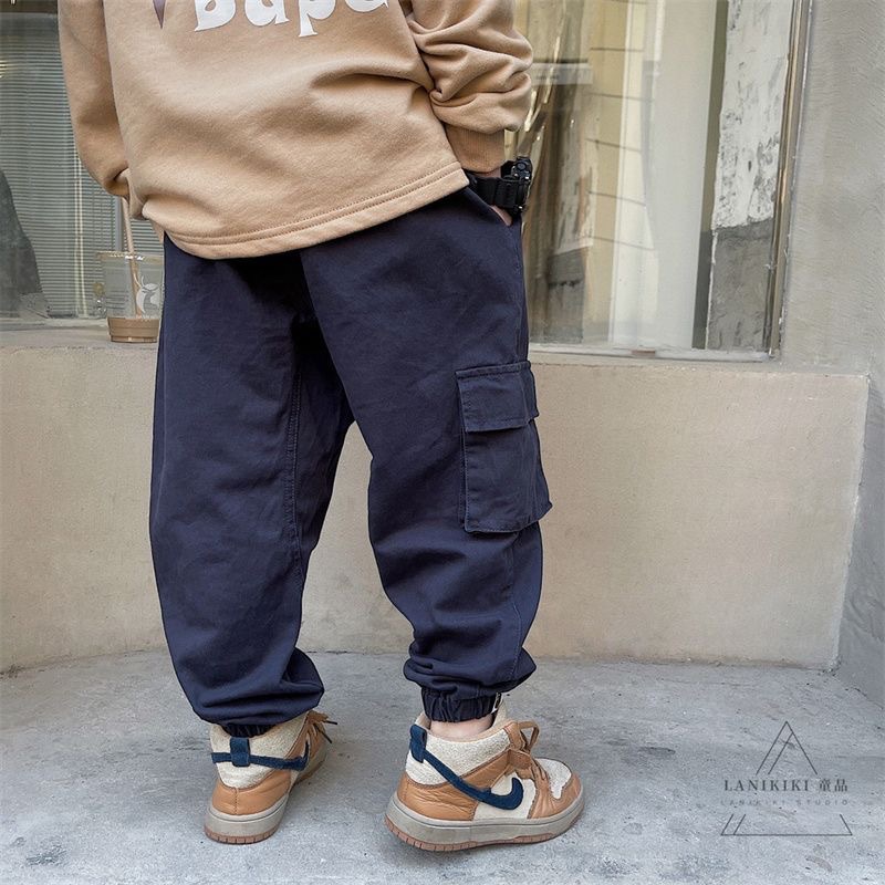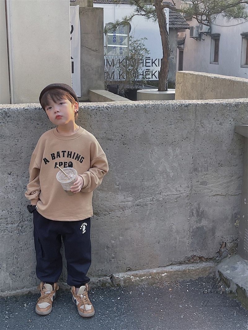 2025년 가을 트렌디한 일본 스타일 아동 캐주얼 원피스 바지, 남아용 단색 레터링 바지스토어 가기