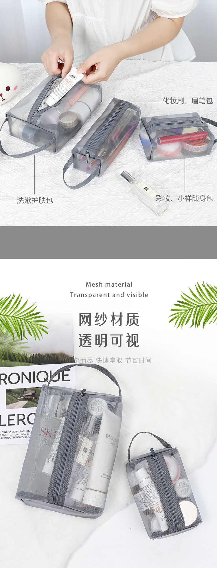 网纱尼龙3件套 化妆包洗漱收纳袋