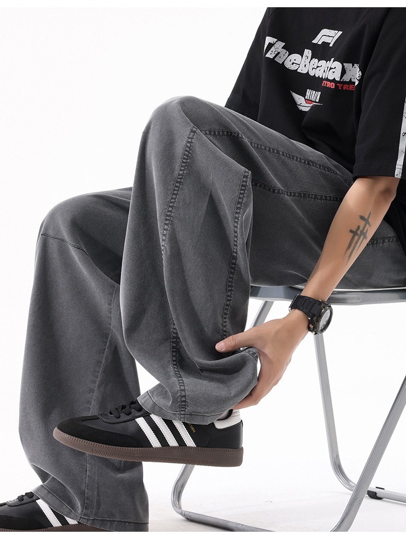 ACU 남성복 | Lyocell Ice Silk Washed Jeans 남성 여름 루즈 스트레이트 드레이프 Tencel 얇은 캐주얼 바지