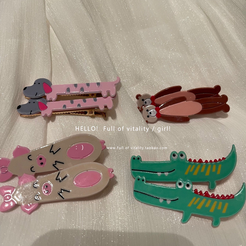 2023 새로운 일본 달콤한 귀여운 창조적 인 3 차원 만화 동물 머리핀 소녀의 심장 Duckbill 클립 사이드 클립 헤어 액세서리스토어 가기