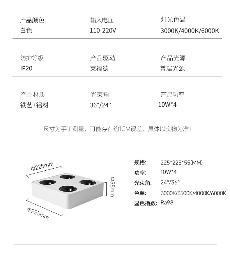 • 흰색 4 헤드 [22.5cm]-전체 스펙트럼 가져온 Puri 광원