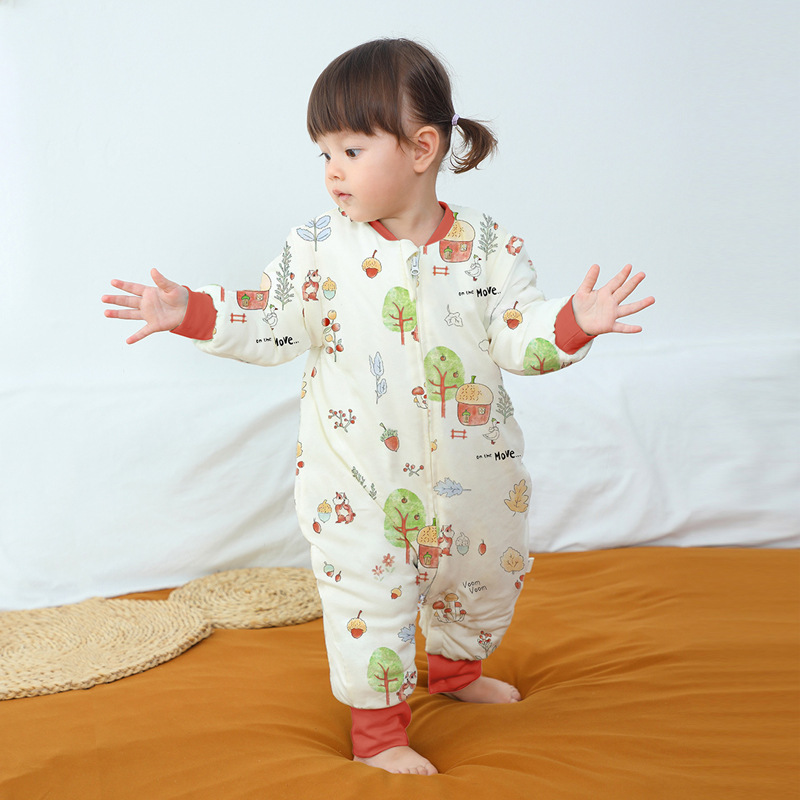 아기의 항온 침낭 더블 레이어 순면 아기 원피스 잠옷 가을 겨울 어린이 다리 면 따뜻한 발차기 방지 이불