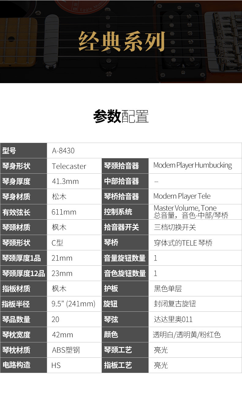 Auriga orega A- 8430 어린이 일렉트릭 기타 전문 성능 Tele 일렉트릭 기타 Farida
