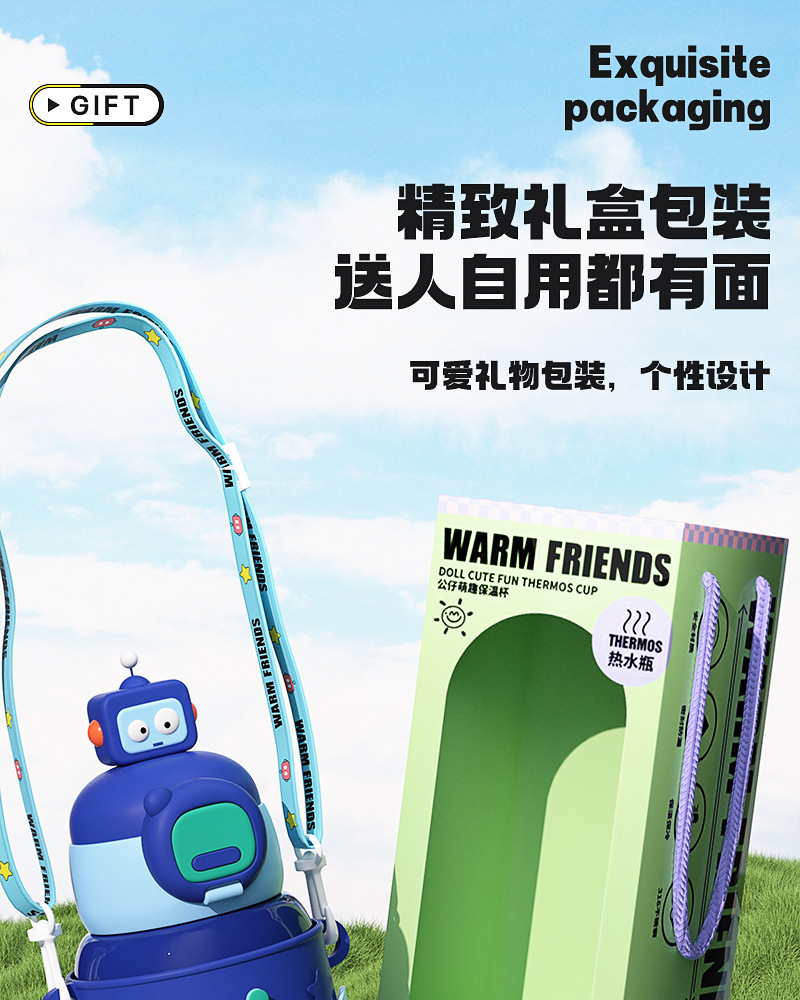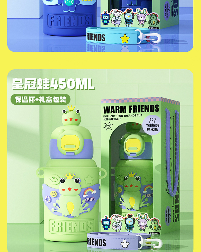 맞춤형 어린이 보온병 컵 높은 색상 가치 316 스테인레스 스틸 물 컵 학생 귀여운 관심 흡입 컵 스트랩 인쇄 로고스토어 가기