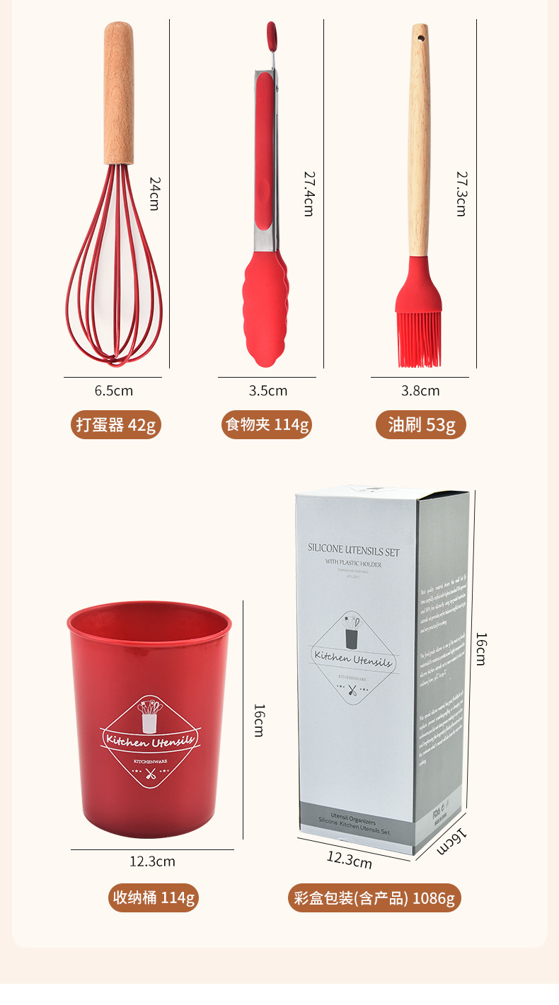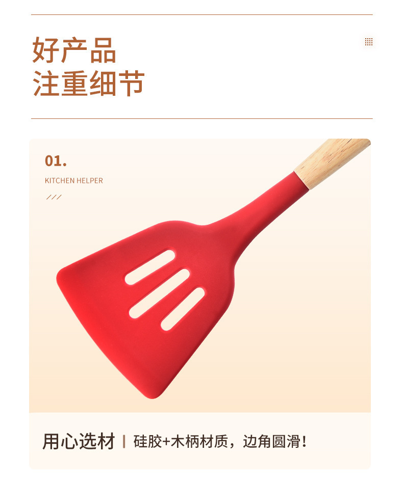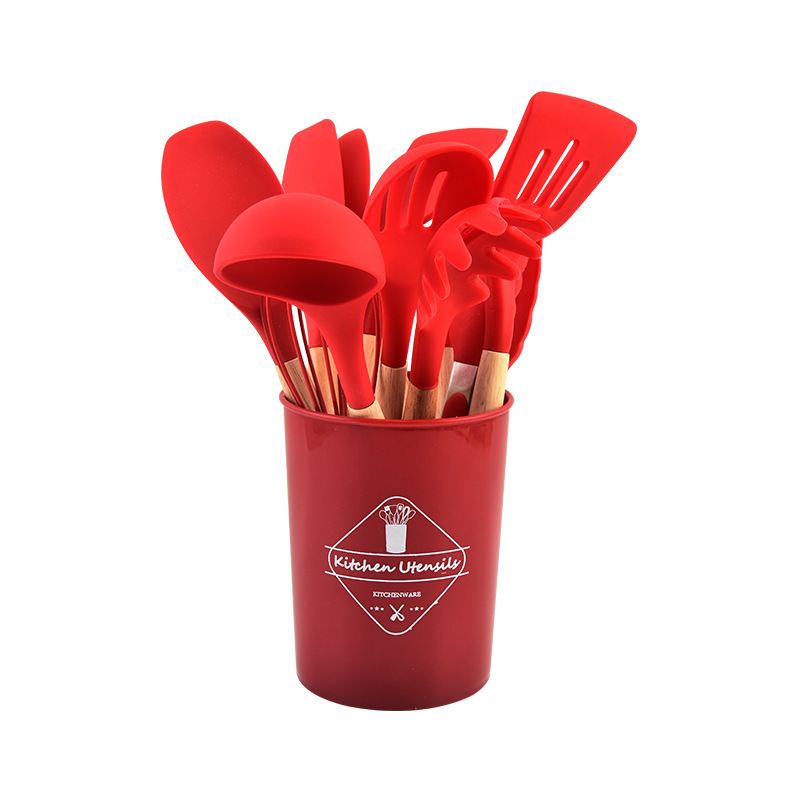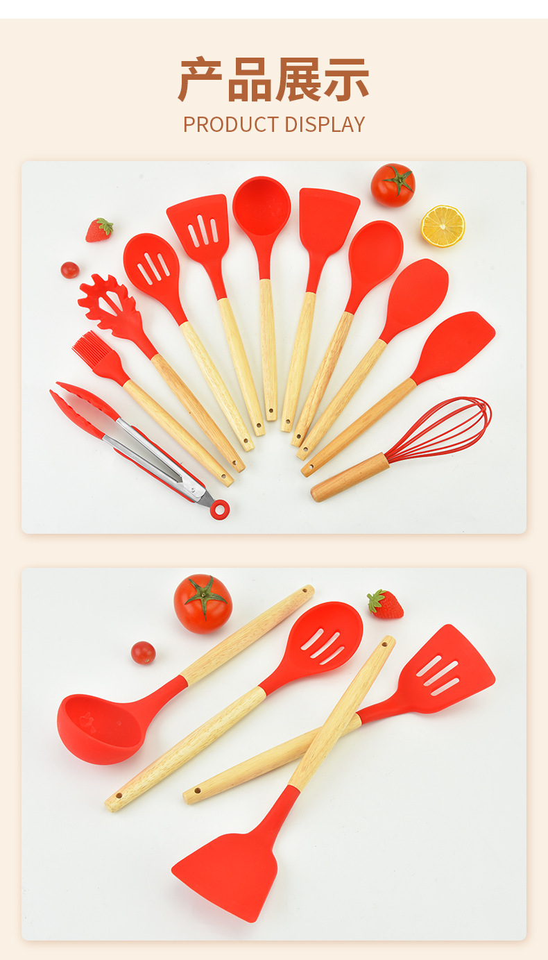공장 직접 나무 손잡이 실리콘 주방 도구 12 개 세트 붙지 않는 팬 요리 삽 숟가락 베이킹 저장 세트