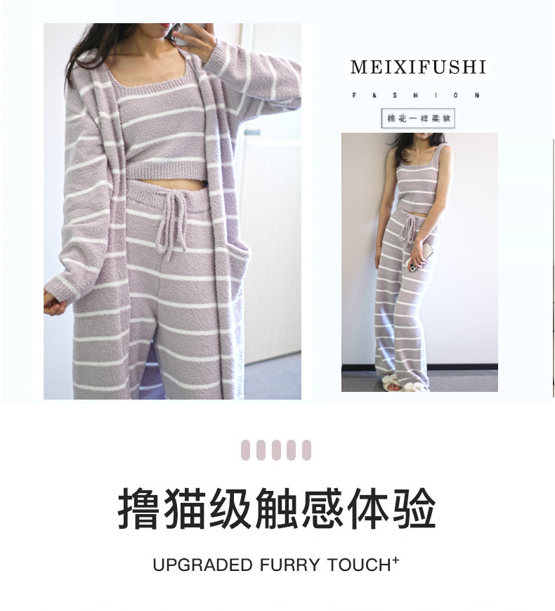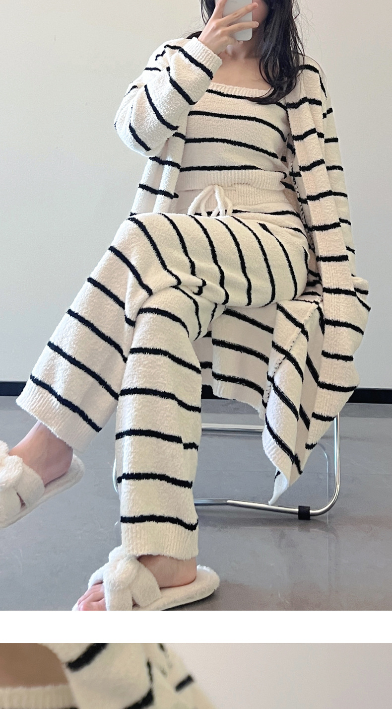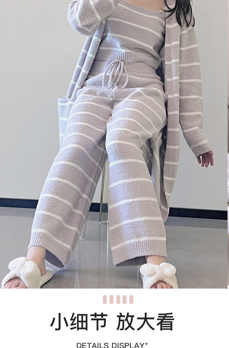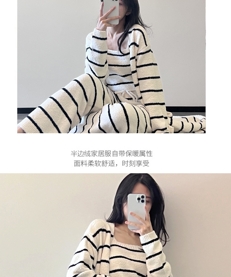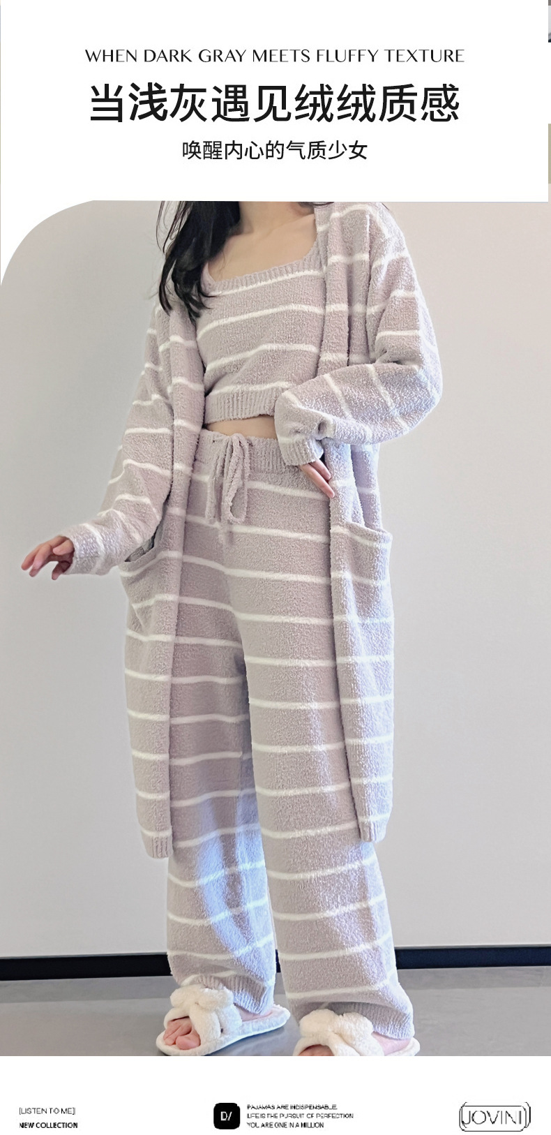 스트라이프 하프 벨벳 잠옷 여성 월간 의류 3 종 세트 따뜻한 두꺼운 카디건 부드러운 겨울 의류 가정 의류스토어 가기