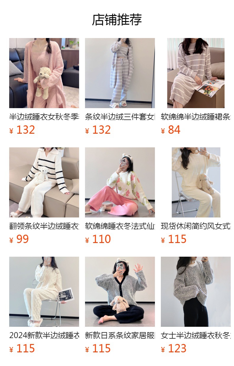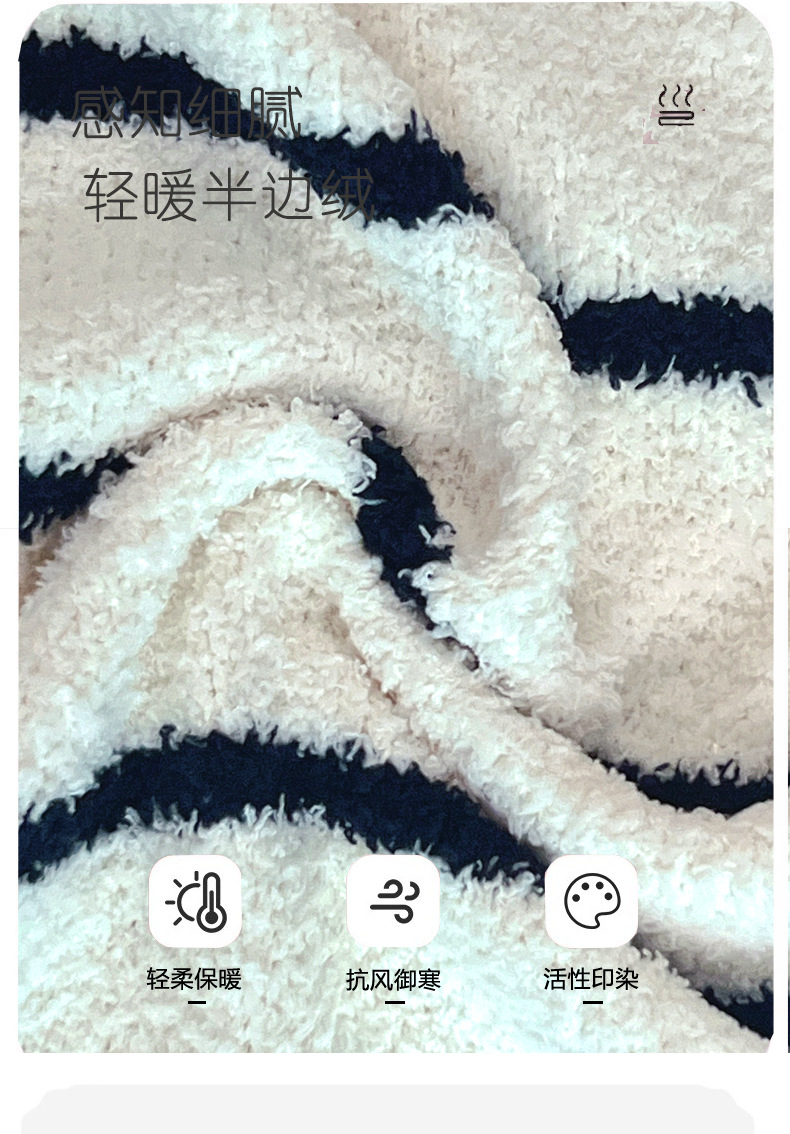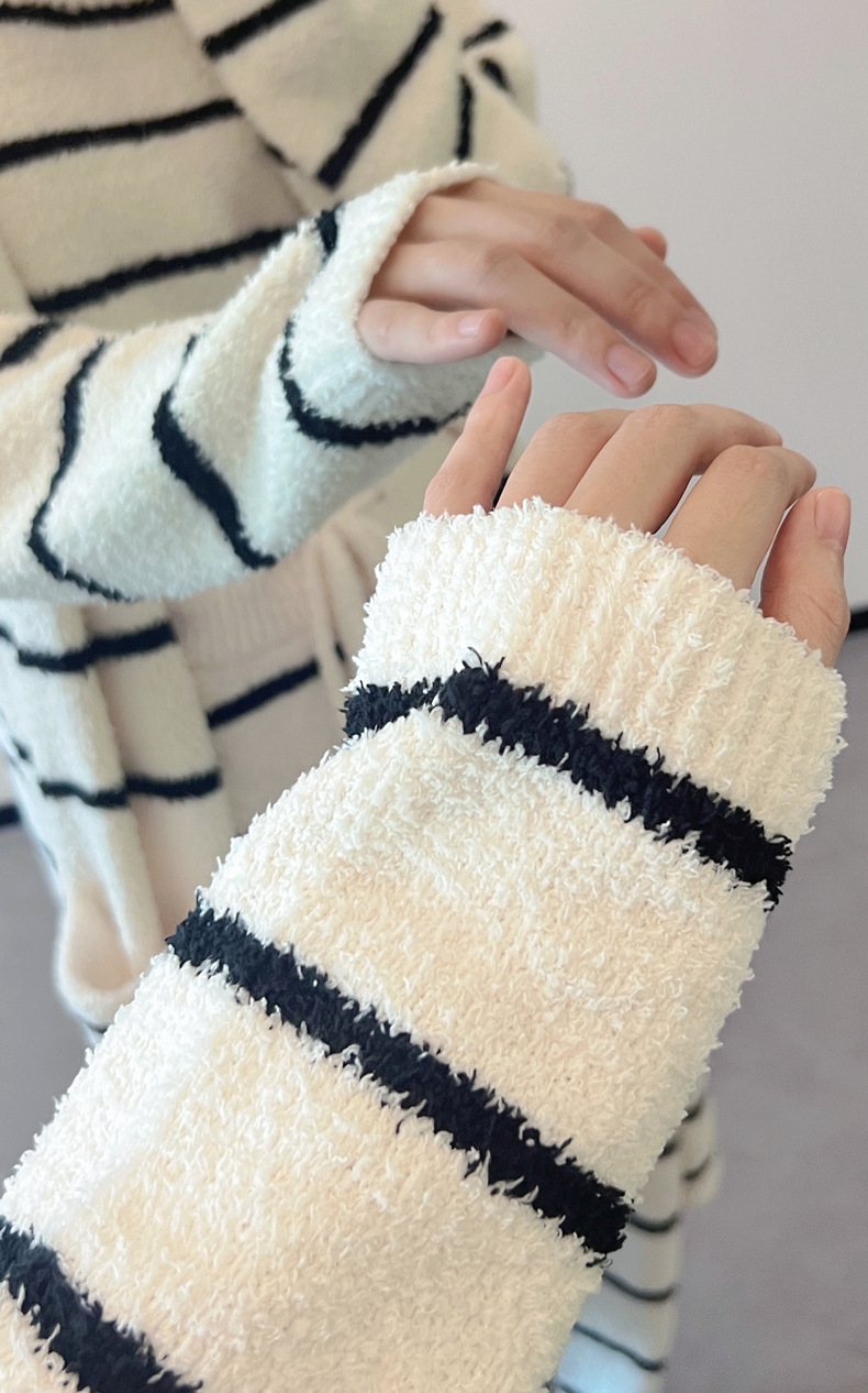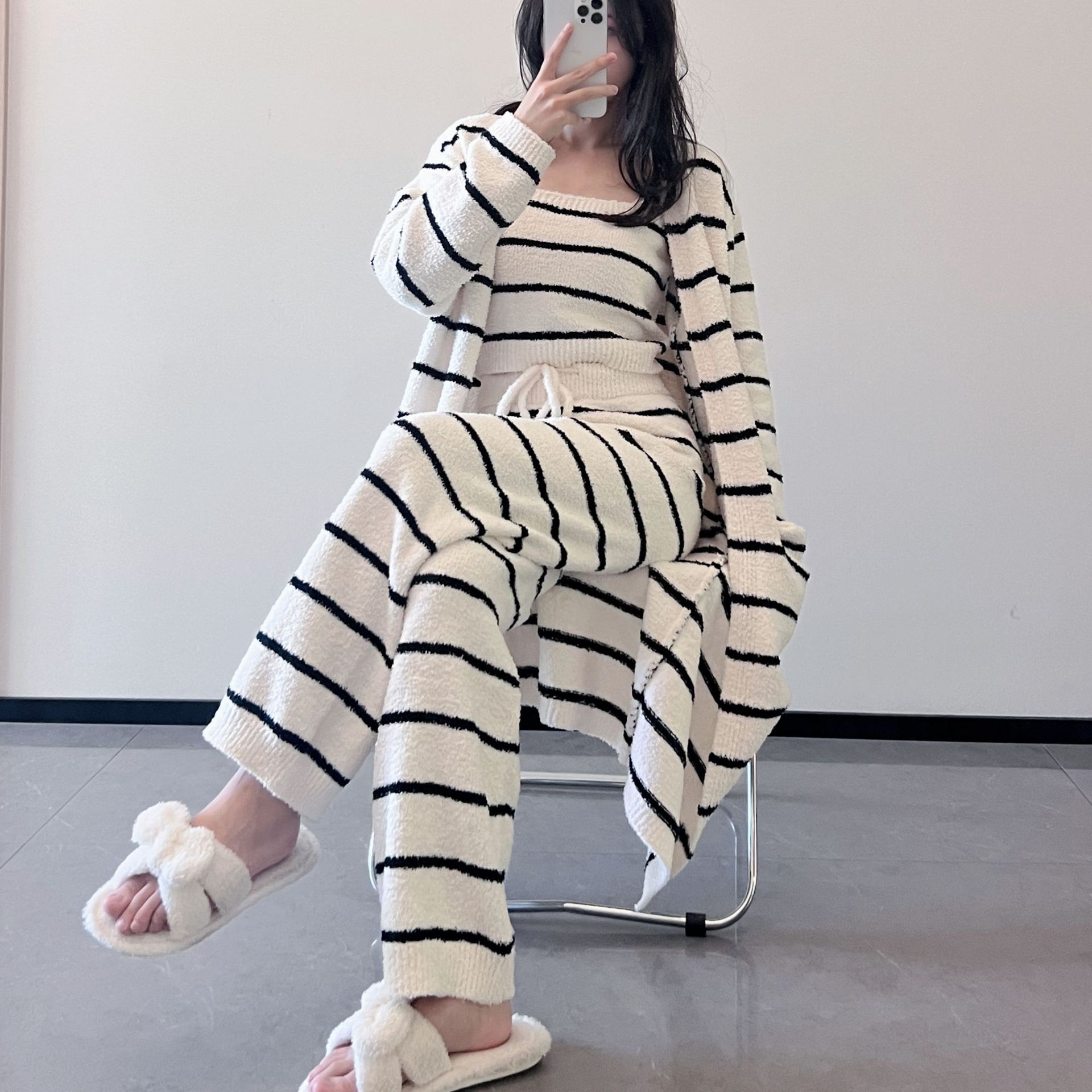 스트라이프 하프 벨벳 잠옷 여성 월간 의류 3 종 세트 따뜻한 두꺼운 카디건 부드러운 겨울 의류 가정 의류스토어 가기