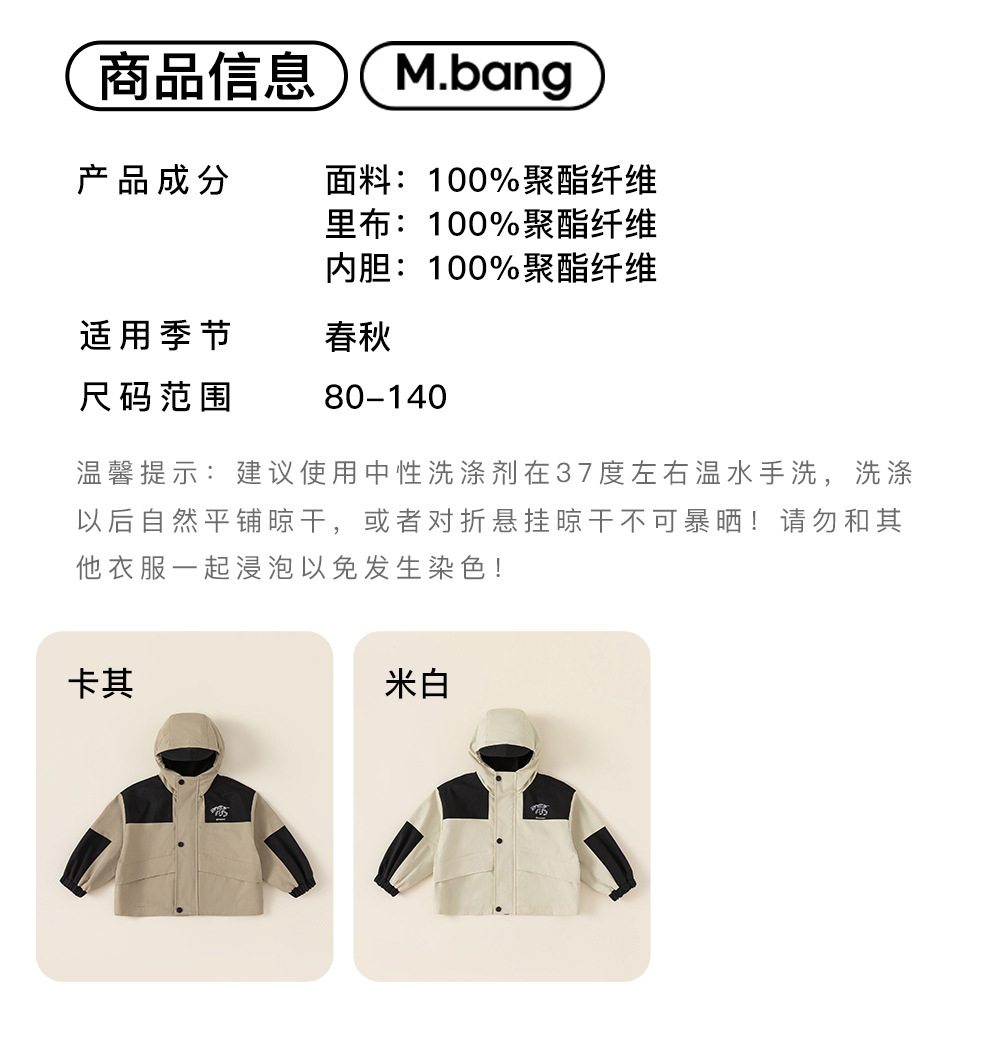Youbao 아동복 아동 재킷 남아 봄, 가을 신상 여아 배색 후드 재킷 삼중 방수 봄, 가을 아웃도어 의류스토어 가기