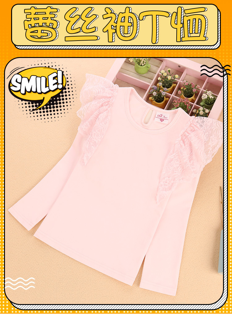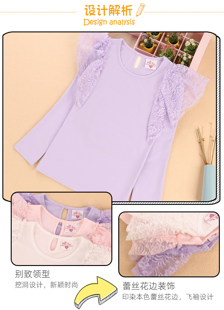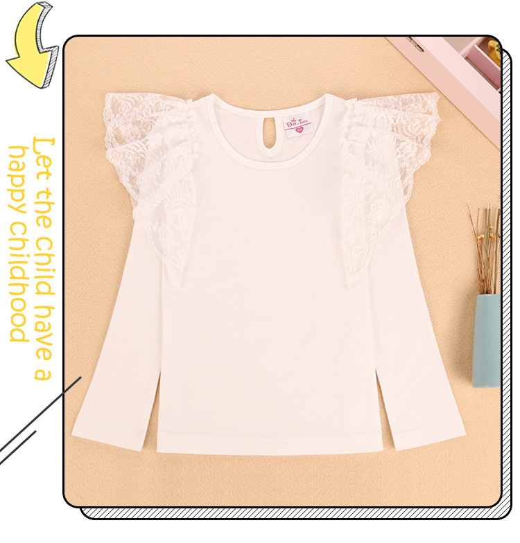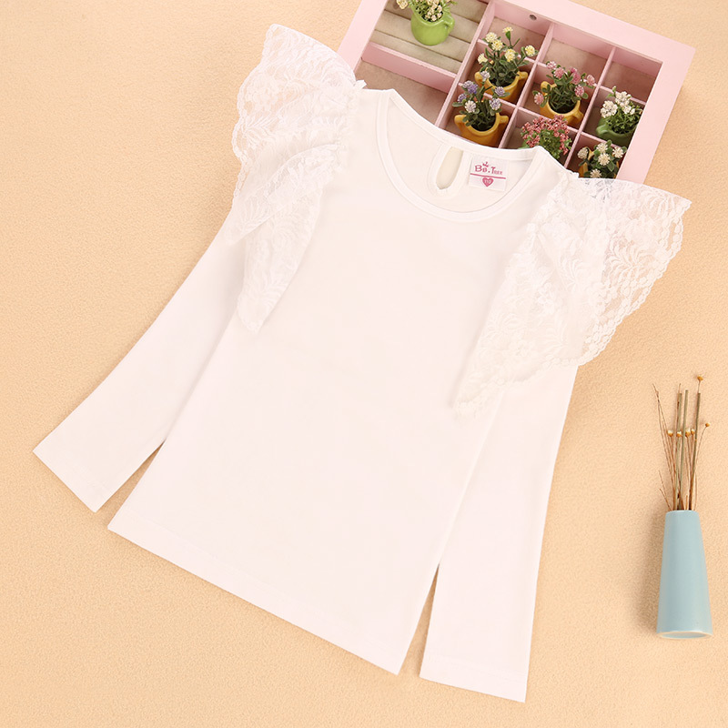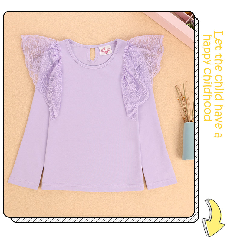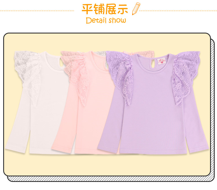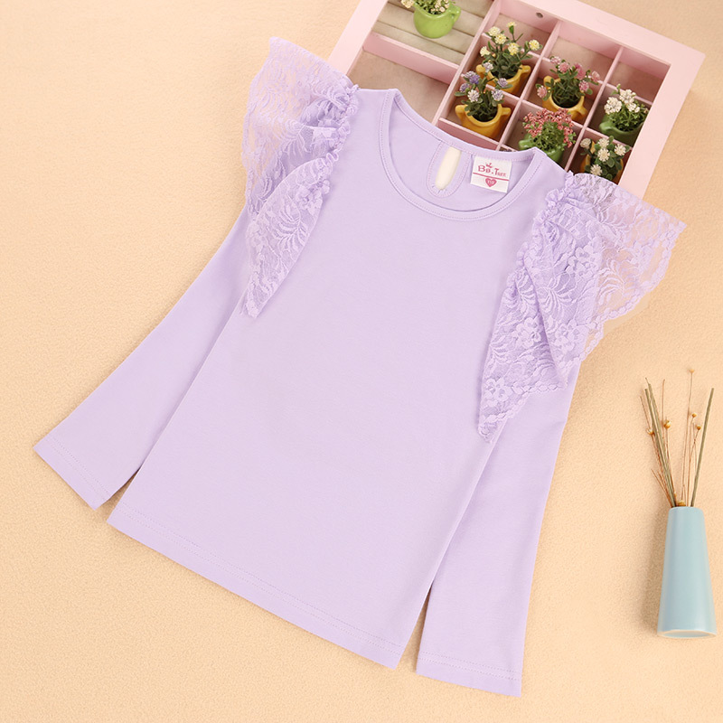 여아 레이스 긴팔 티셔츠 어린이 외국 스타일 공주 탑 봄과 가을 얇은 t 단색 라운드 넥 탑 대외 무역 공급스토어 가기