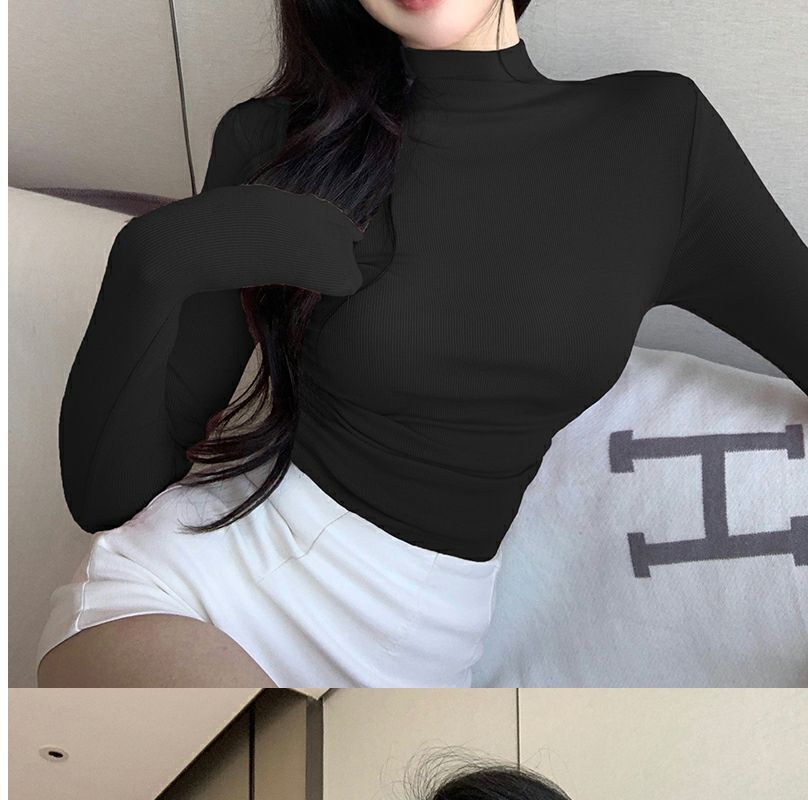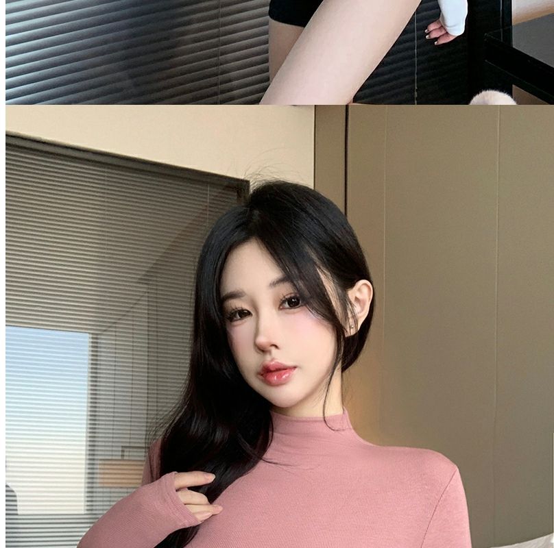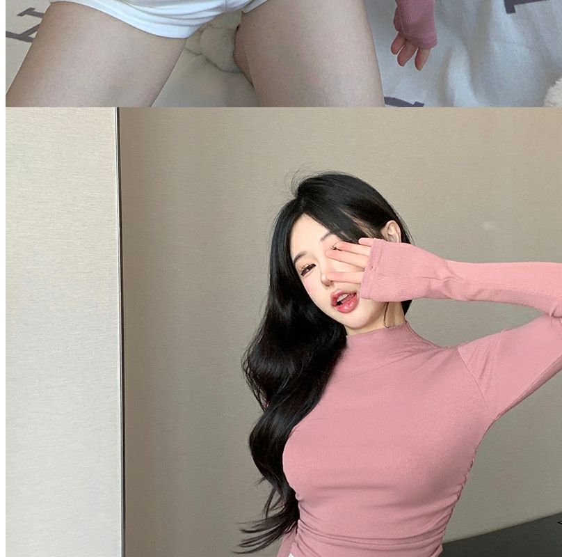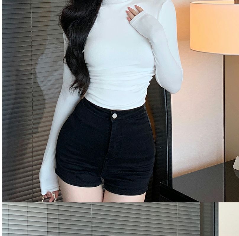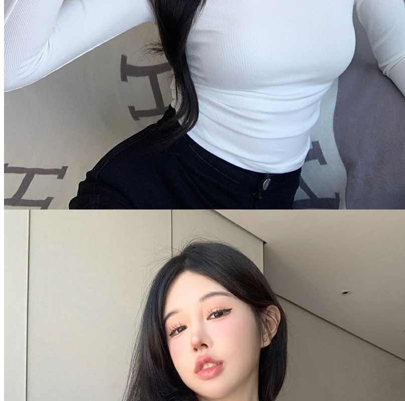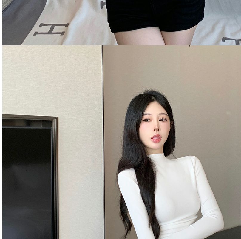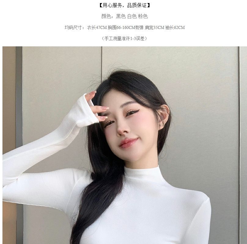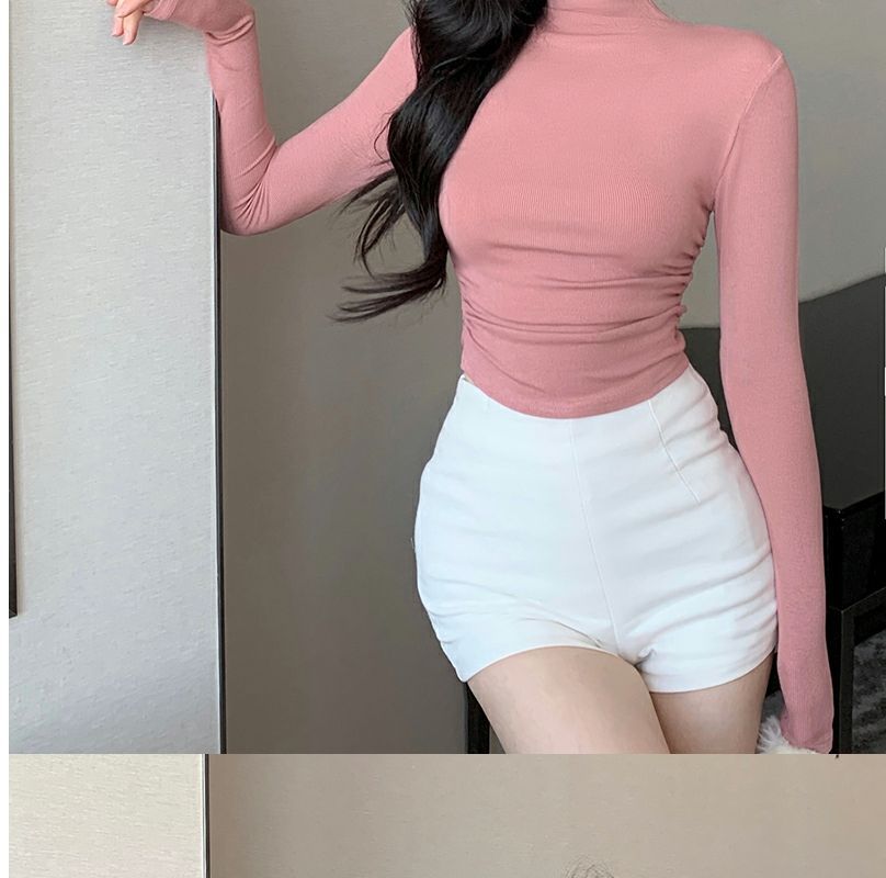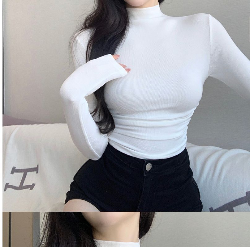 여성용 하프 터틀넥 셔츠, 봄 스타일, 타이트하고 슬림한 오른쪽 어깨 긴팔 티셔츠, 짧은 스타일, 핫걸 탑스토어 가기
