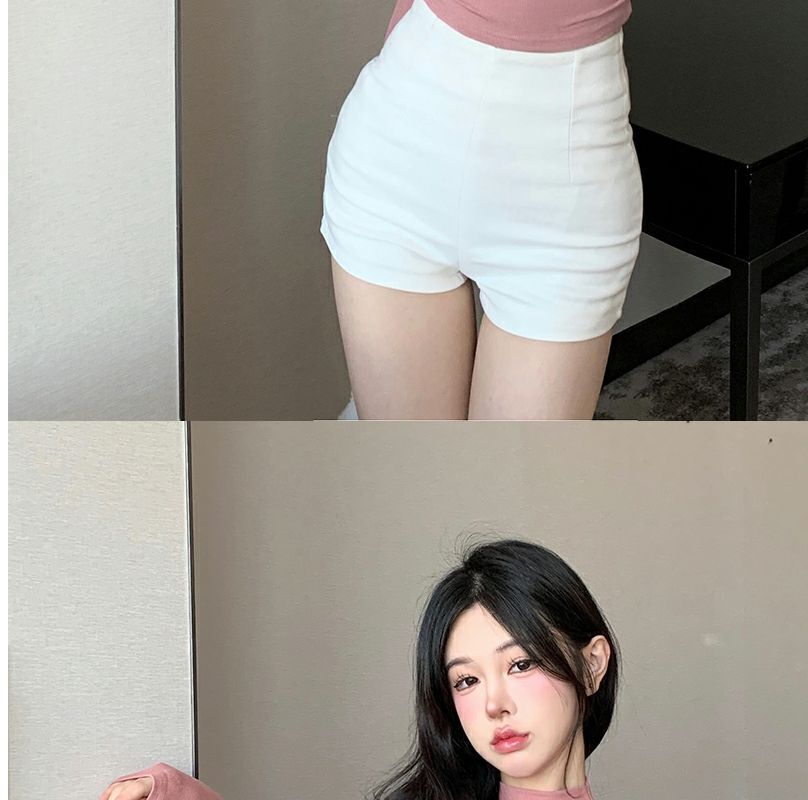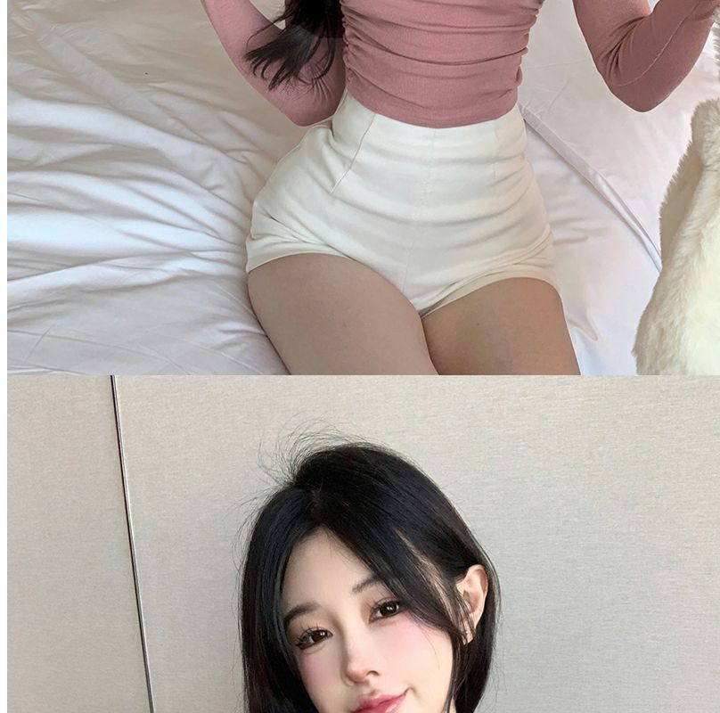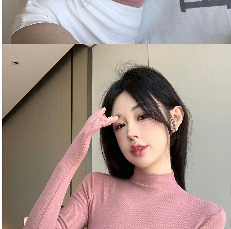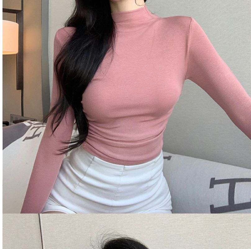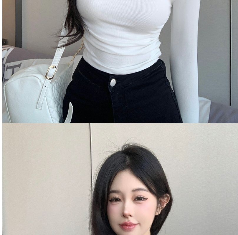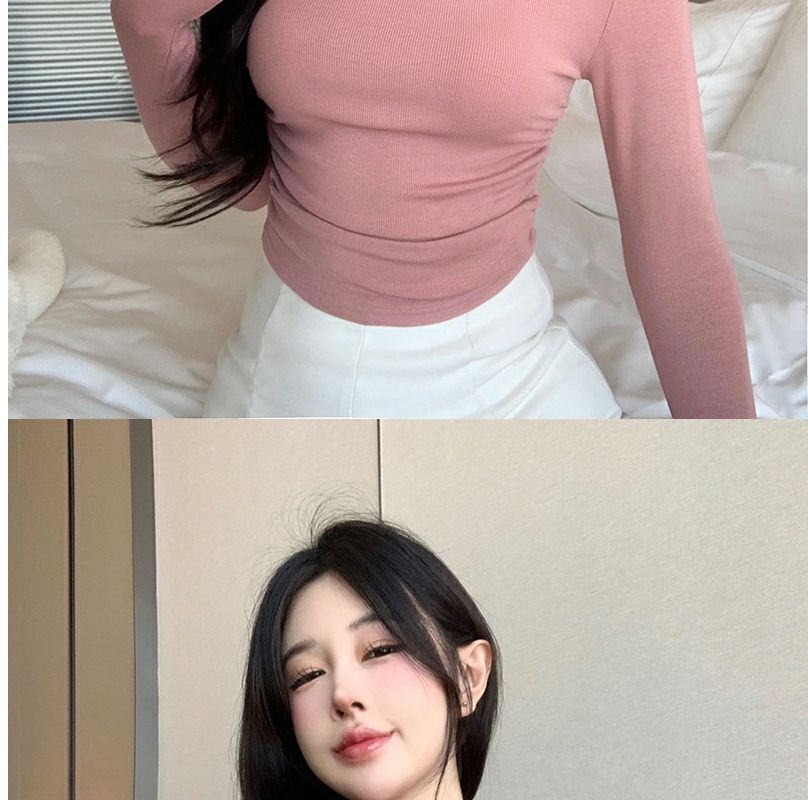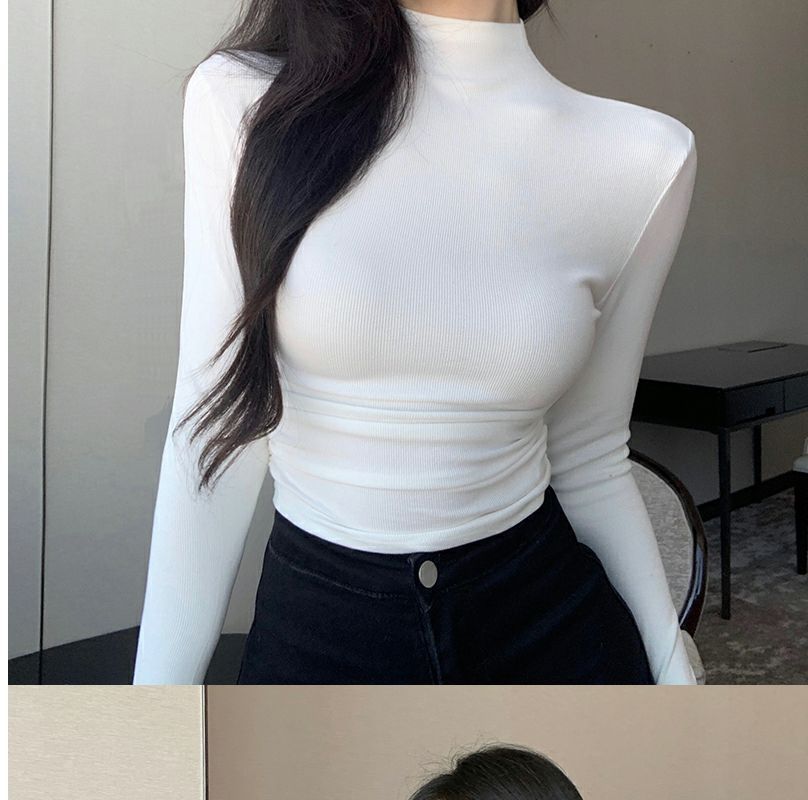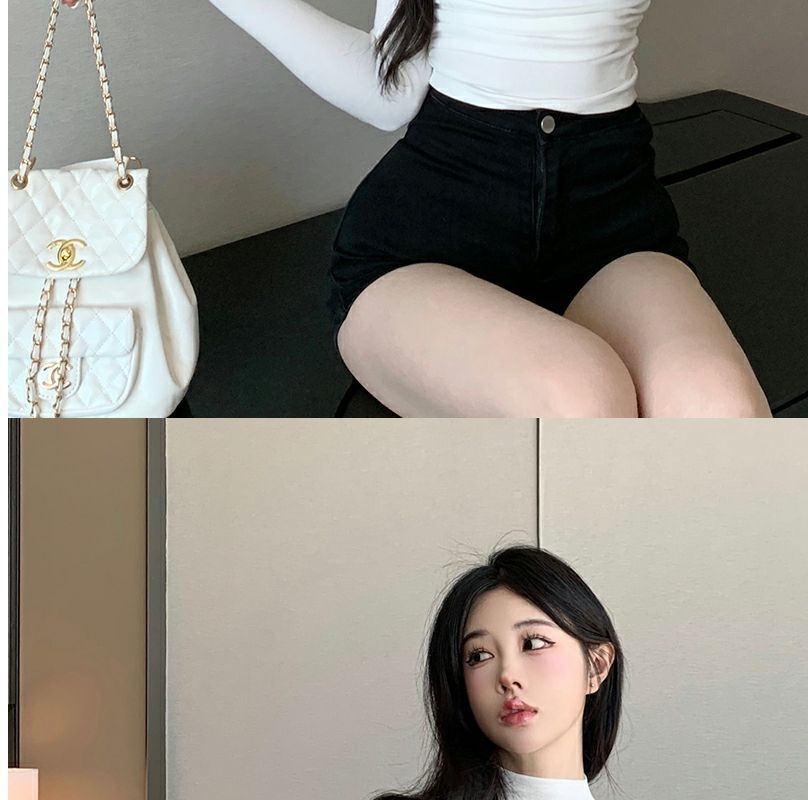 여성용 하프 터틀넥 셔츠, 봄 스타일, 타이트하고 슬림한 오른쪽 어깨 긴팔 티셔츠, 짧은 스타일, 핫걸 탑스토어 가기