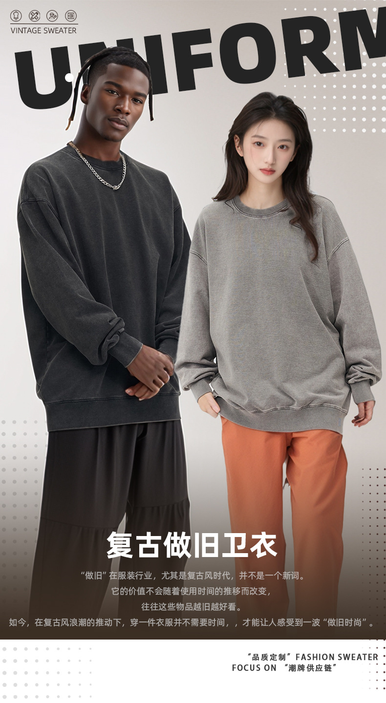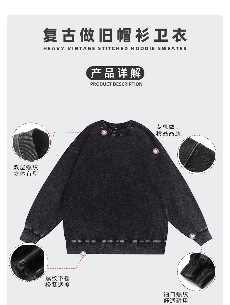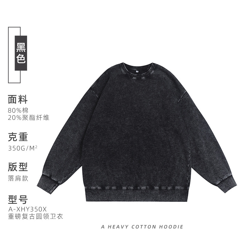 350G 아메리칸 레트로 빈티지 스타일 프린트 순면 헤비웨이트 라운드넥 드롭숄더 루즈핏 풀오버 맞춤 로고 인쇄스토어 가기
