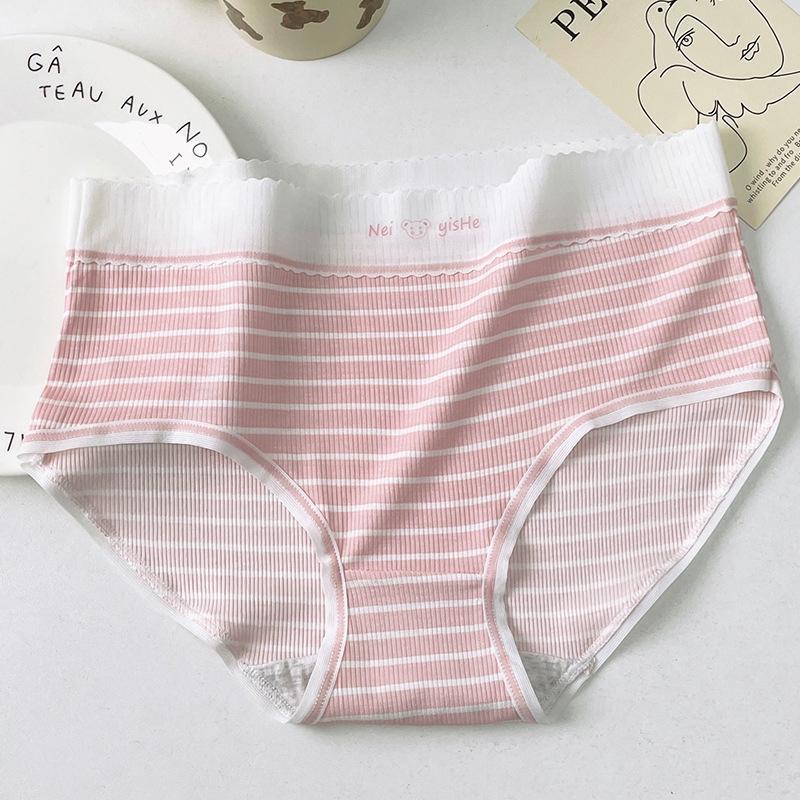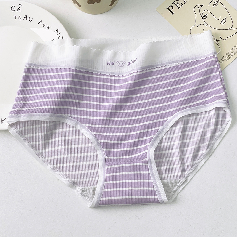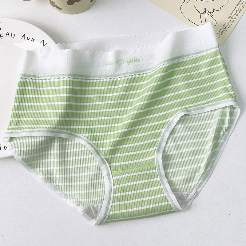 새로운 하이 웨이스트 스트라이프 대나무 숯 섬유 속옷 여자의 복부 엉덩이 리프팅 통통녀 면 가랑이 여자의 통기성 팬티