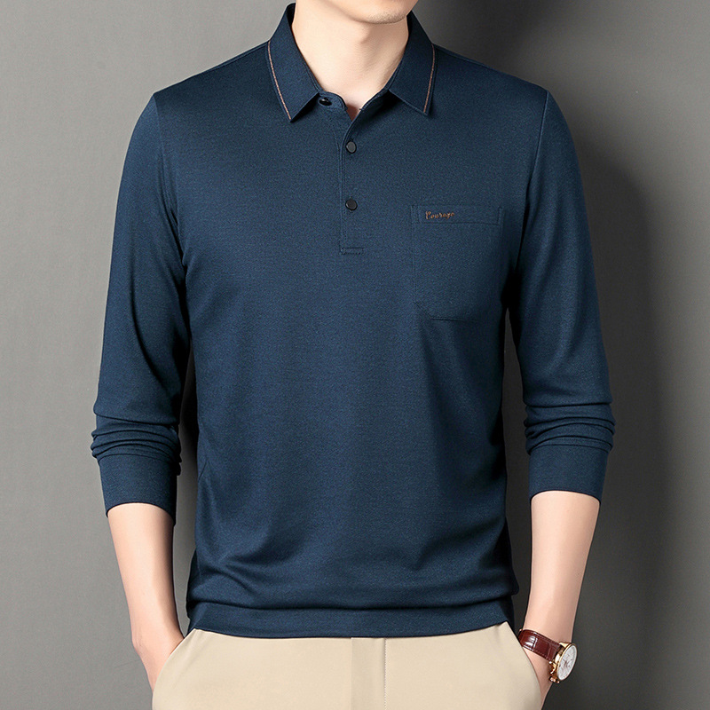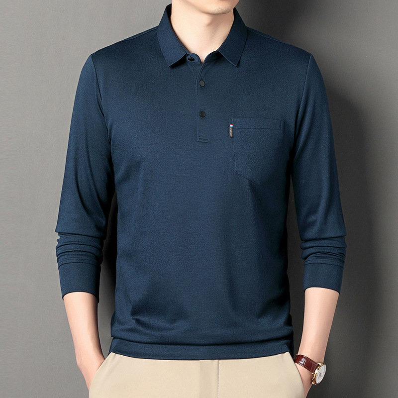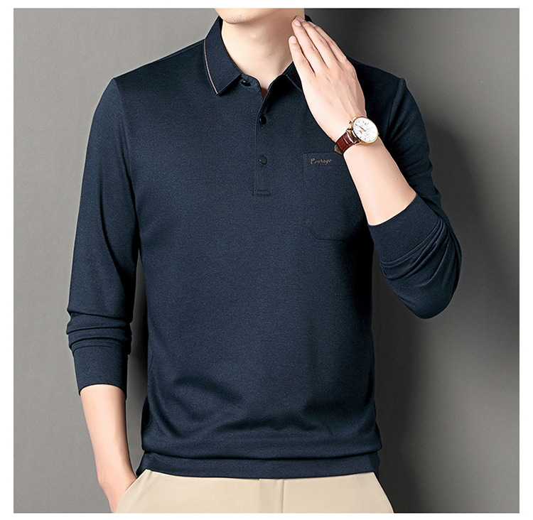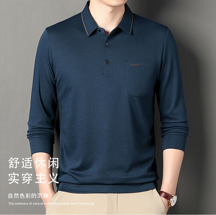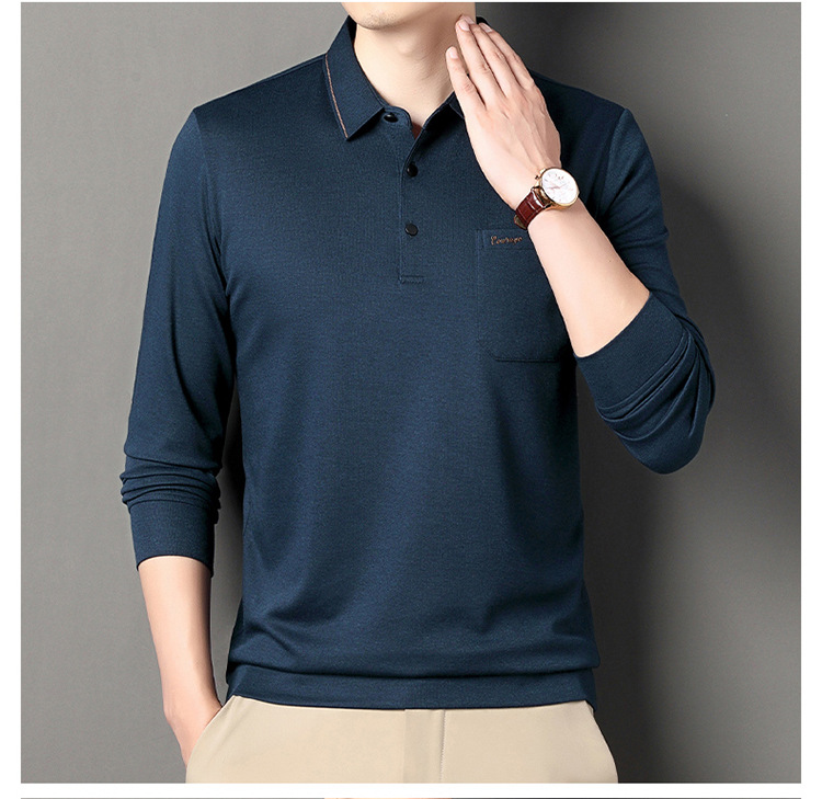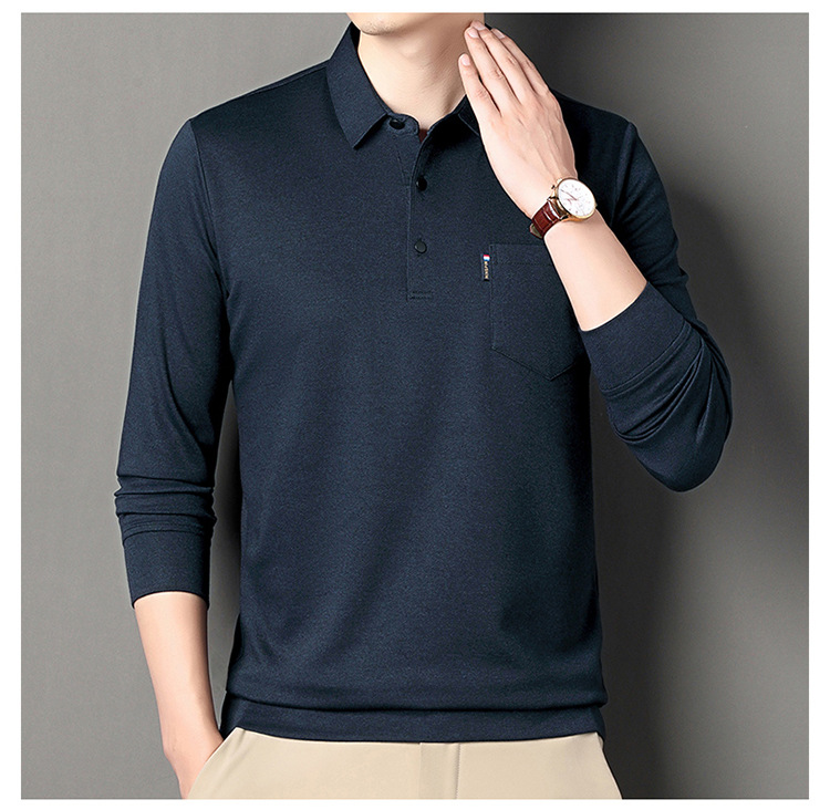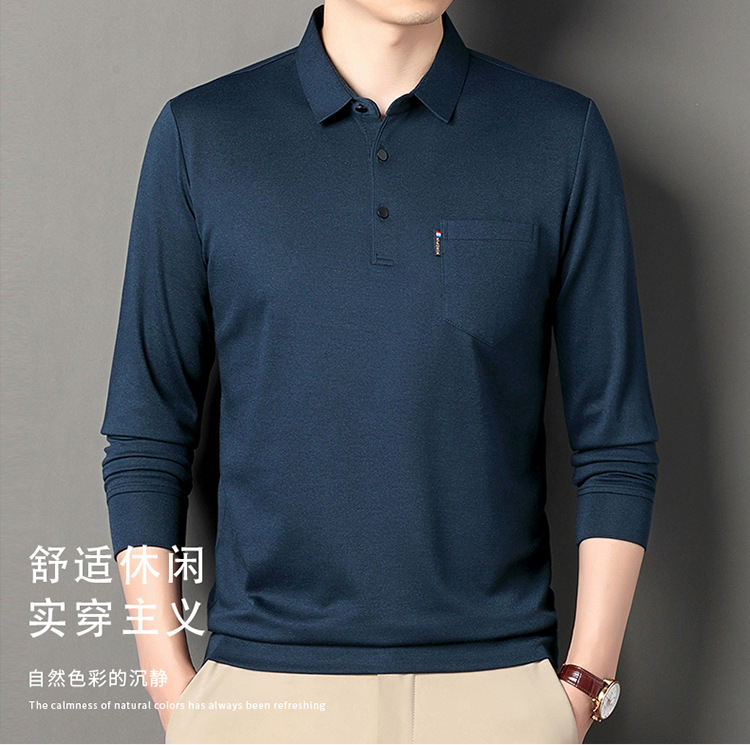 중년 남성 긴팔 티셔츠 아빠의 가을 캐주얼 폴로 셔츠 중년 남성 봄과 가을 탑 베이스 셔츠 티셔츠