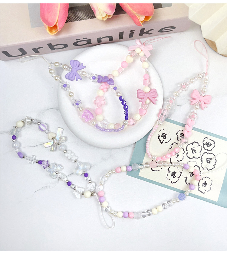 새로운 고양이 활 휴대 전화 끈 신선한 분말 구슬 휴대 전화 팔찌 유니버설 휴대용 한국 인 스타일