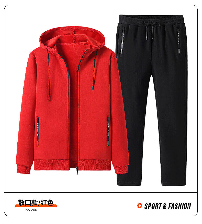 새로운 남성 캐주얼 스포츠 세트 기모 면 재킷 야외 실행 피트니스 패션 야구 세트 투피스 세트