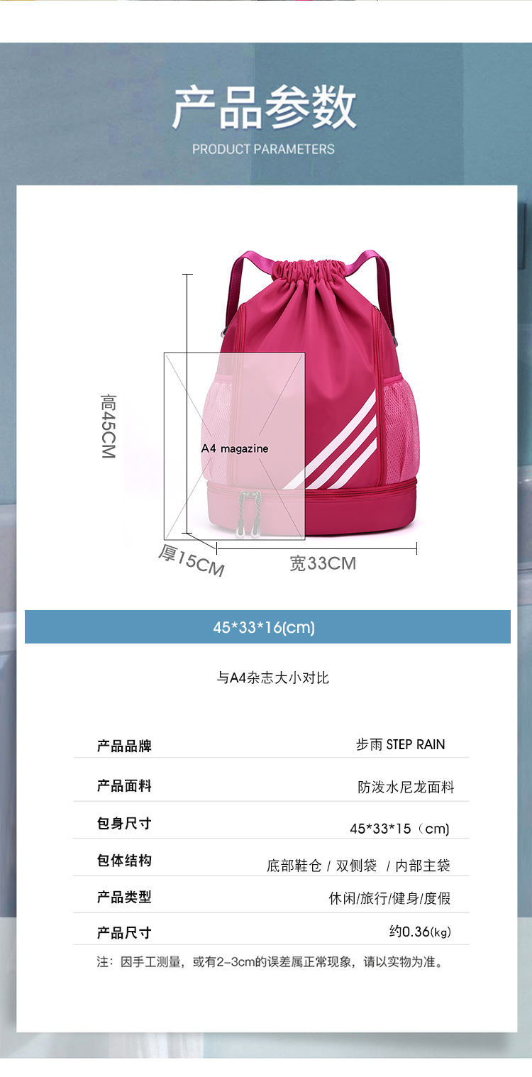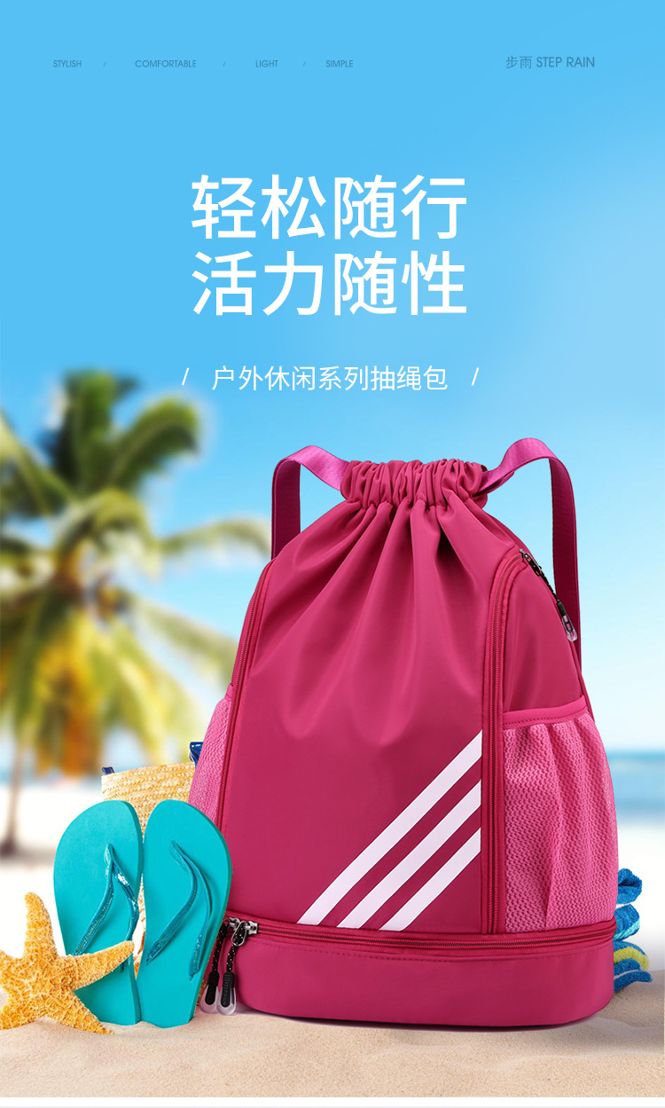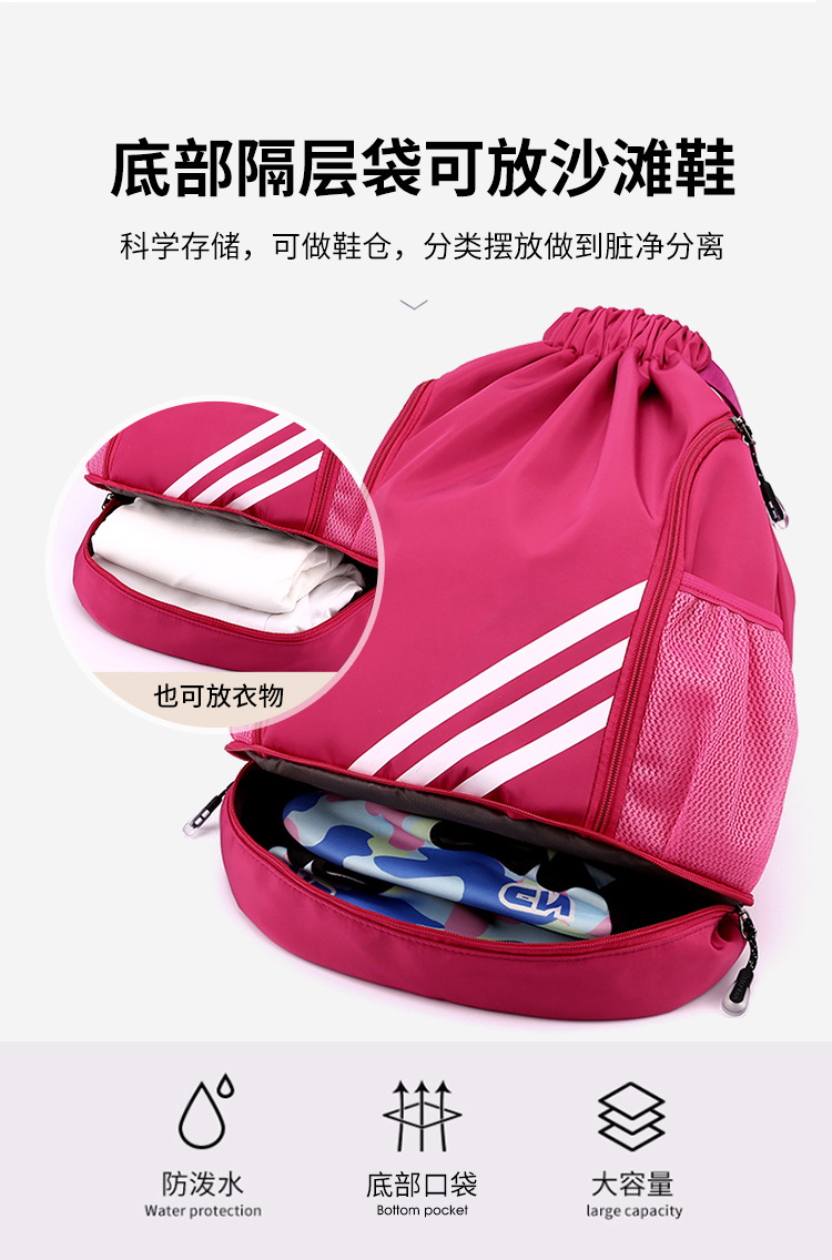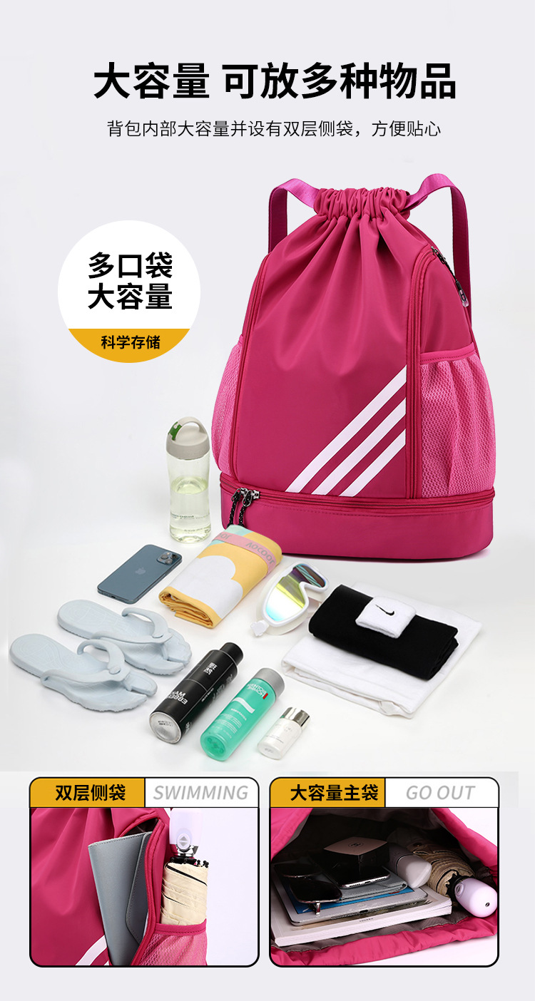 졸라매는 끈 포켓 배낭 스포츠 대용량 배낭 도매 한국어 단색 여행 보관 가방