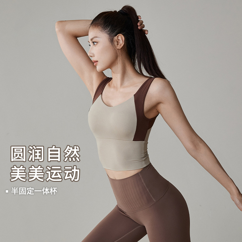 반 고정 원피스 컵 스포츠 속옷 여성용 여름 고강도 충격 방지 처짐 방지 요가 조끼 달리기 피트니스 브라스토어 가기