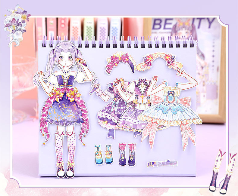 Xinmo 소녀 드레스 업 게임 스티커 공주 메이크업 스티커 어린 소녀 DIY 수제 장면 드레스 업 컬렉션