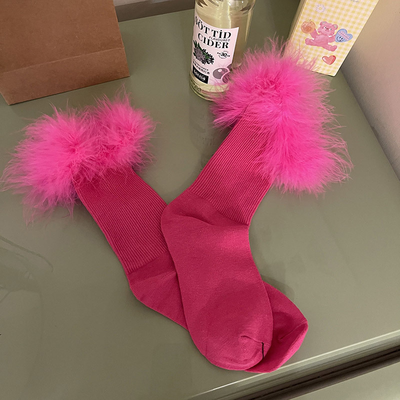 밀레니엄 y2k 바비 핑크 빈티지 스파이스 걸 깃털 레이스 걸 컬러 면 미드 튜브 스택 양말 아마존 양말스토어 가기