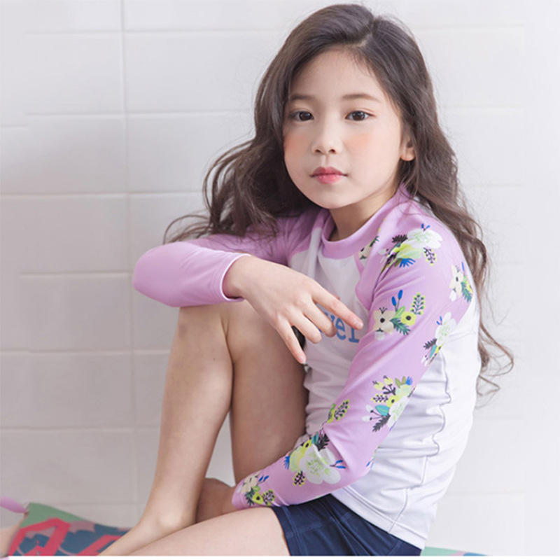 여아 여아 아이스 슬리브 긴팔 수영복 여아 아기의 느슨한 통기성 슬리브 분할 수영복 큰 어린이 플랫 코너스토어 가기